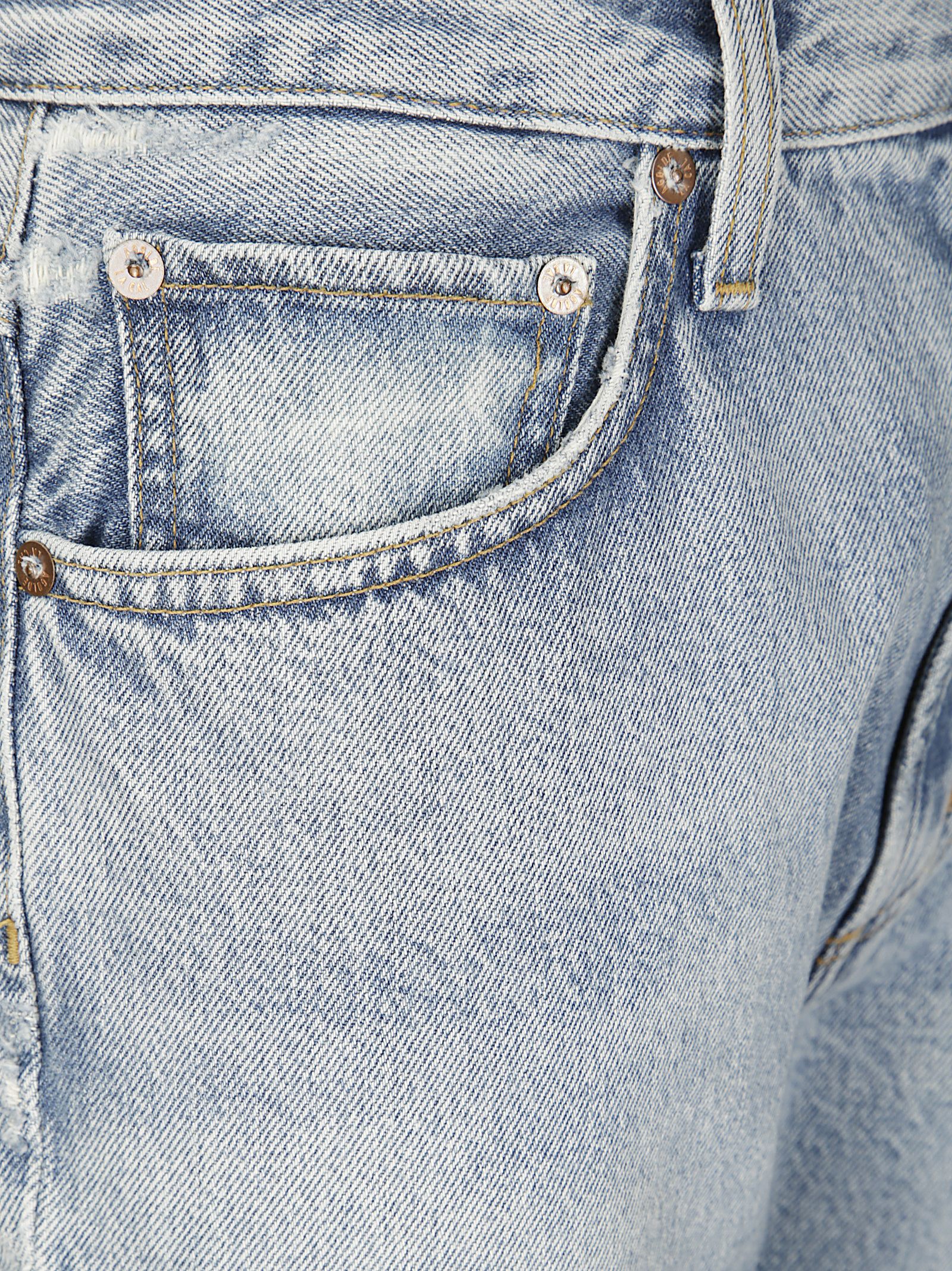 Ausgestellte Five-Pocket-Jeans mit Fransen am Saum und Knopf- und Reißverschluss