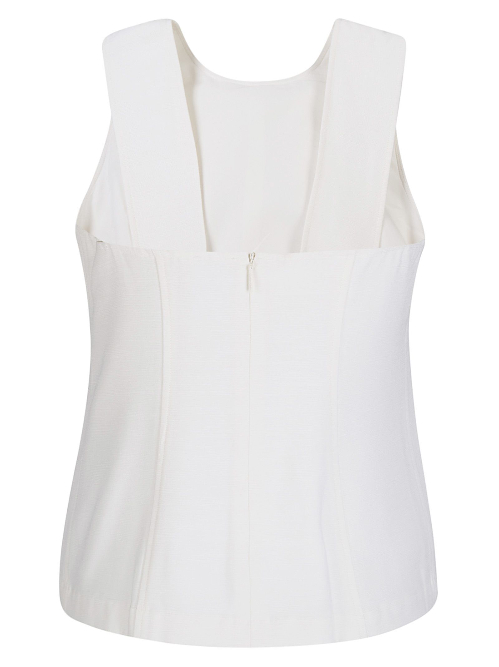 Top in viscosa, tessuto texturizzato, spalline medie, schiena semi scoperta e chiusura con zip sul retro, regular fit.