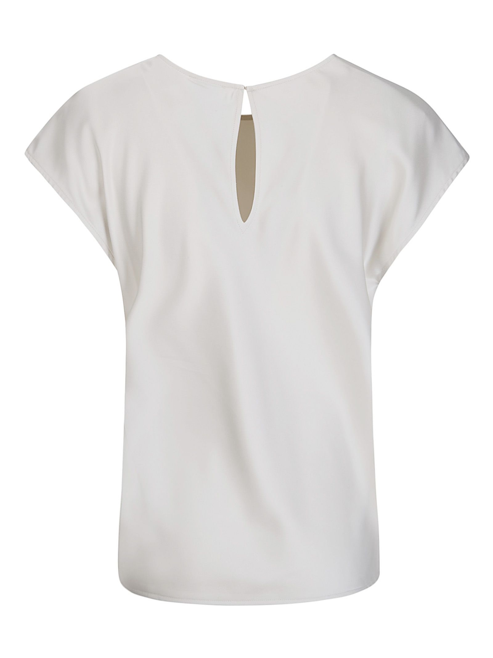 Top in satin opaco, chiusura con bottone sul retro, fit regular, collo tondo.