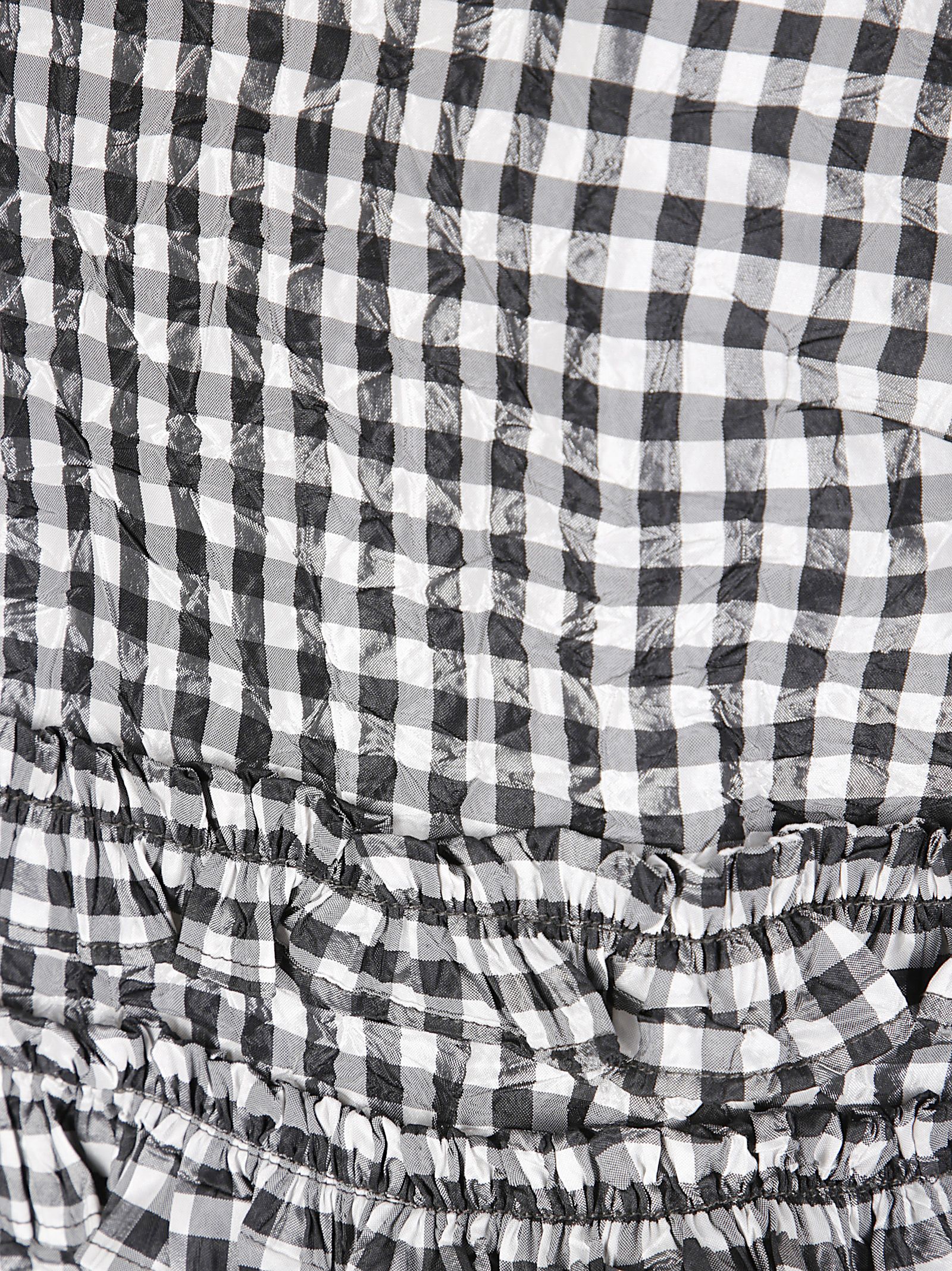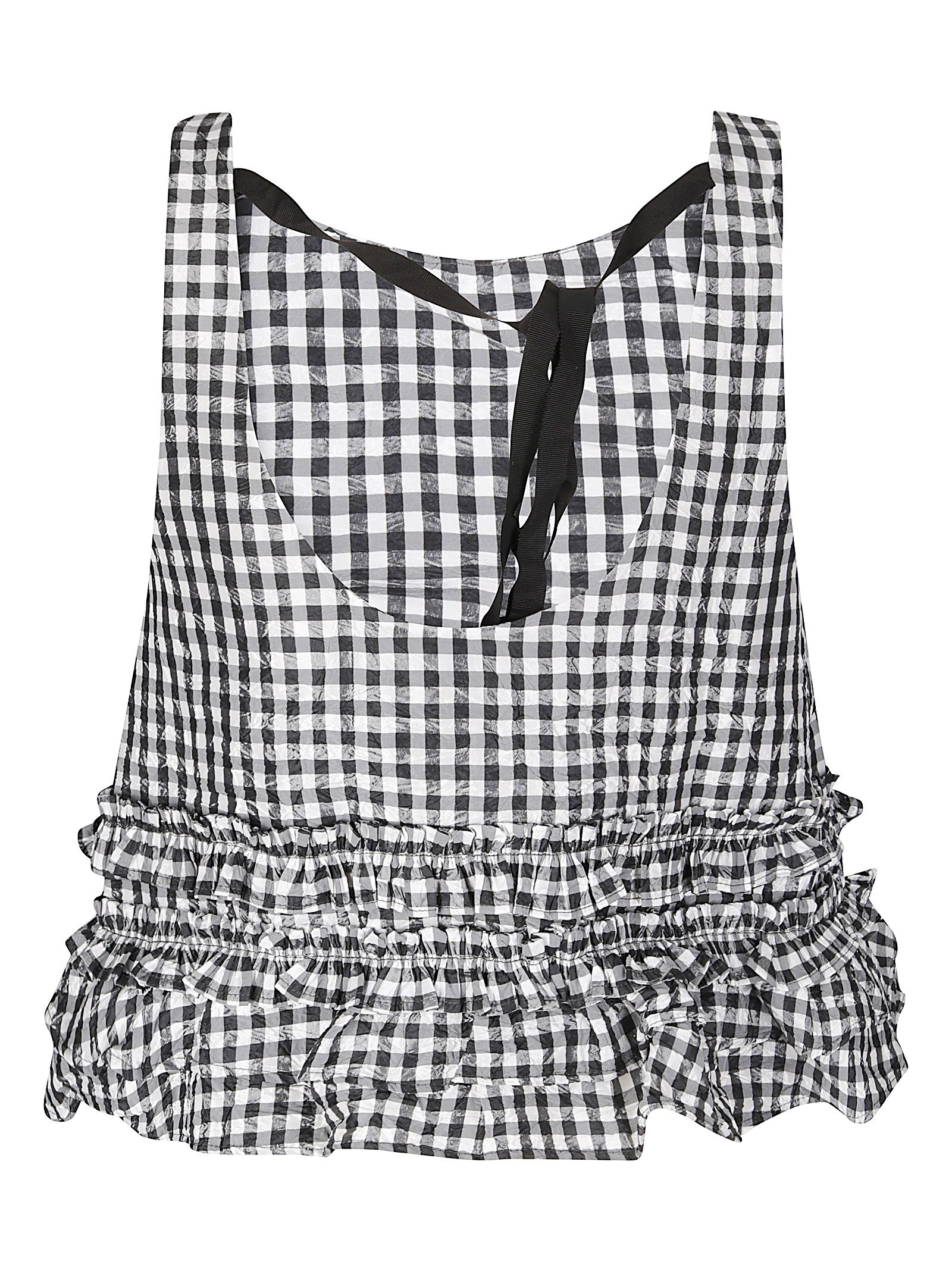 Slim Fit-Oberteil aus kariertem Taft mit Rüschen und grobem Greinbesatz.