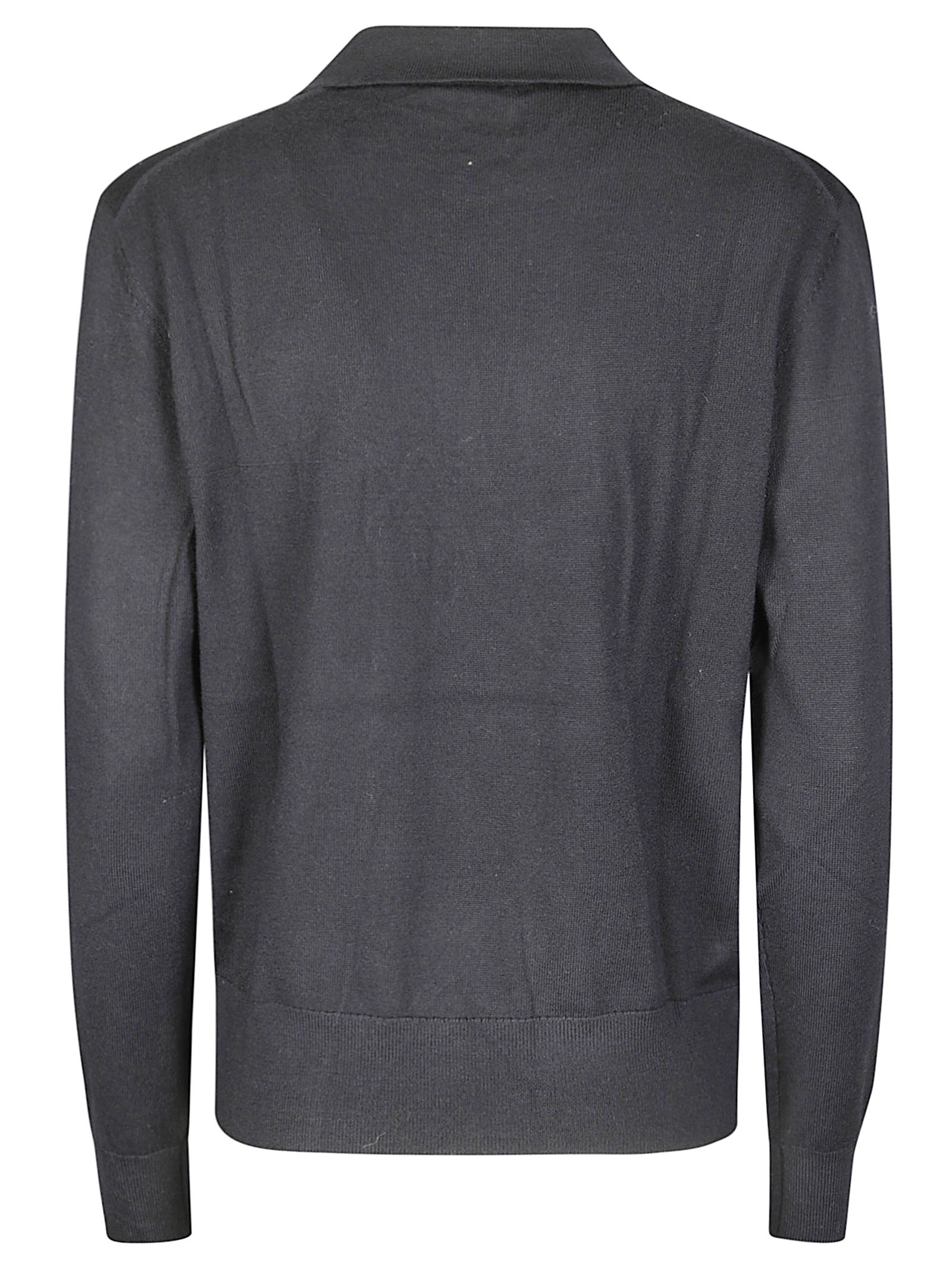 Maglione con scollo a V con colletto senza bottoni, maniche lunghe, vestibilità regular, dettaglio logo ricamato tono su tono.