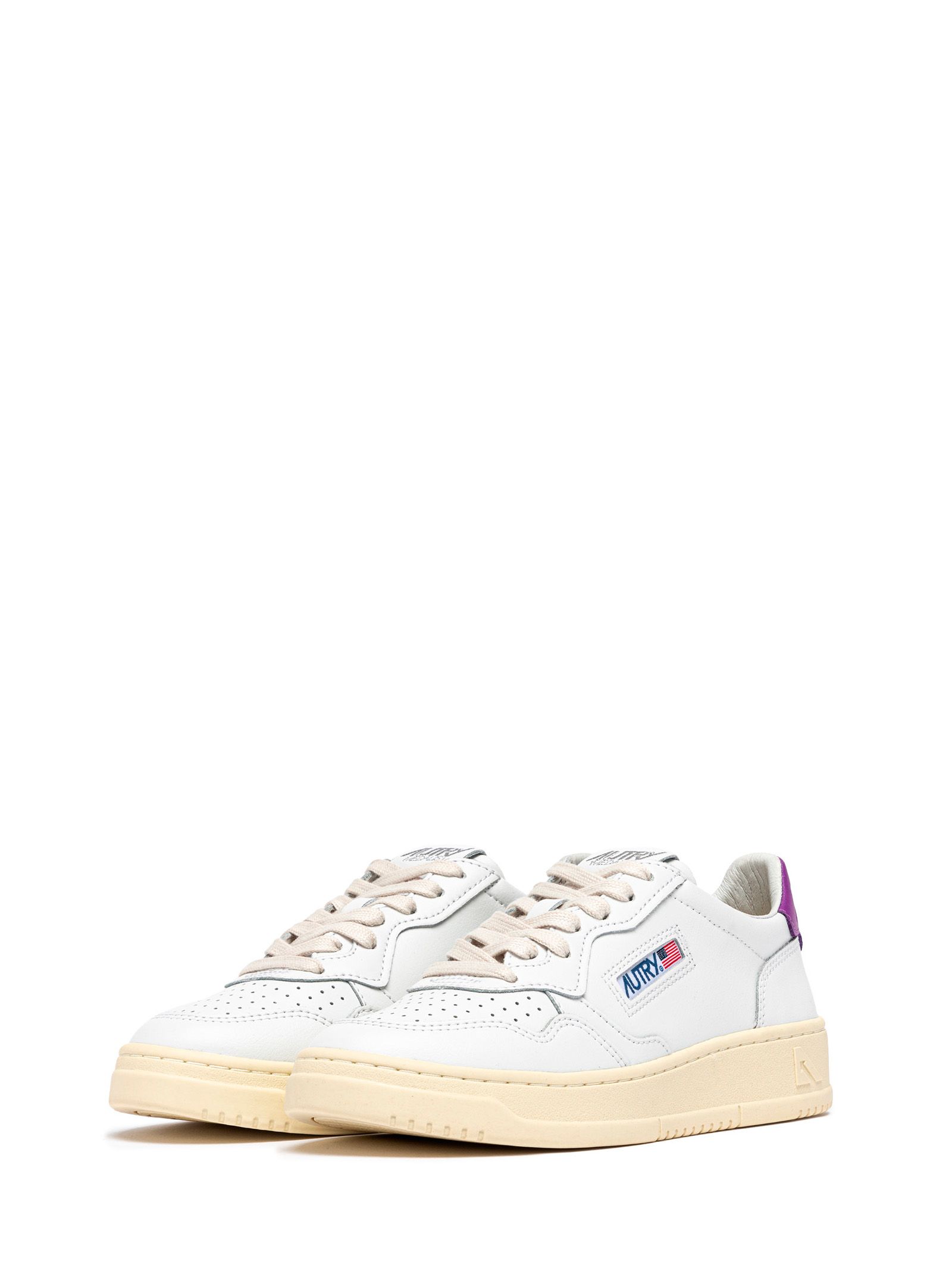 Sneakers in pelle modello Medalist, tallone viola a contrasto, suola in gomma, logo laterale.