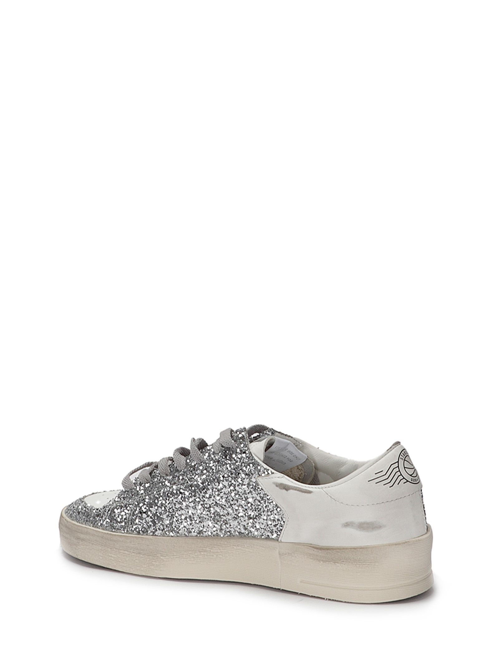 Stardan Ledersneaker mit Glitzer, weißen Einsätzen, grauen Schnürsenkeln, Used-Effekt.