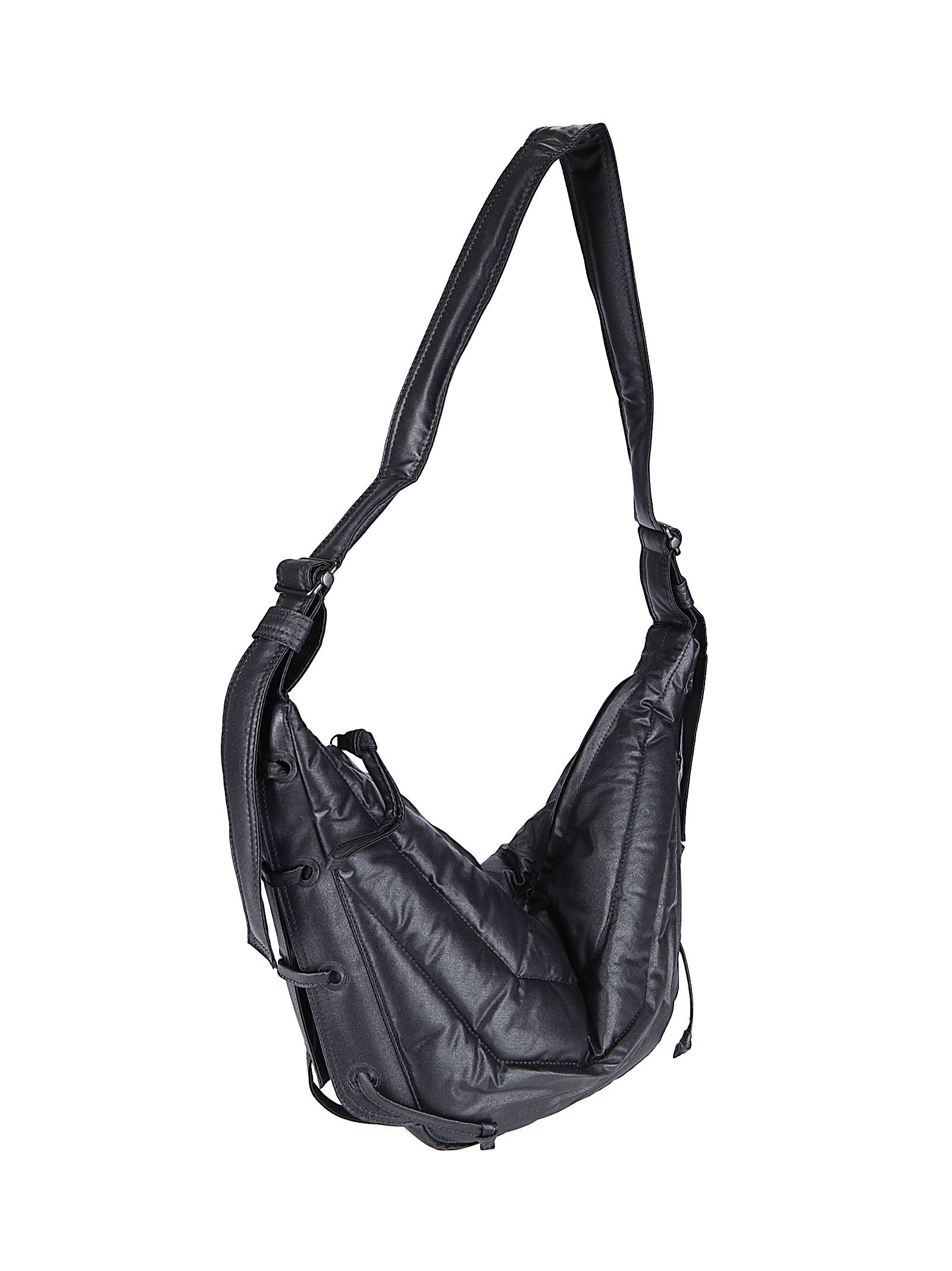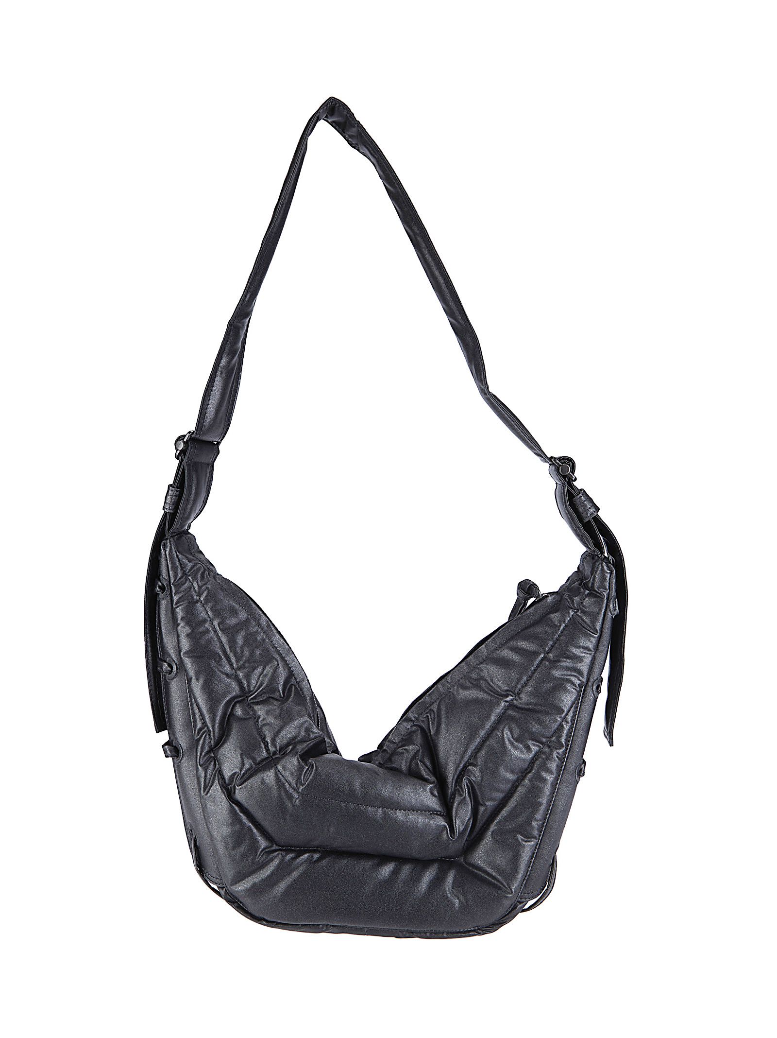 Kleine, weiche Wildtasche aus glänzender Baumwolle, verstellbarer Schultergurt, Reißverschluss, Ziernähte.