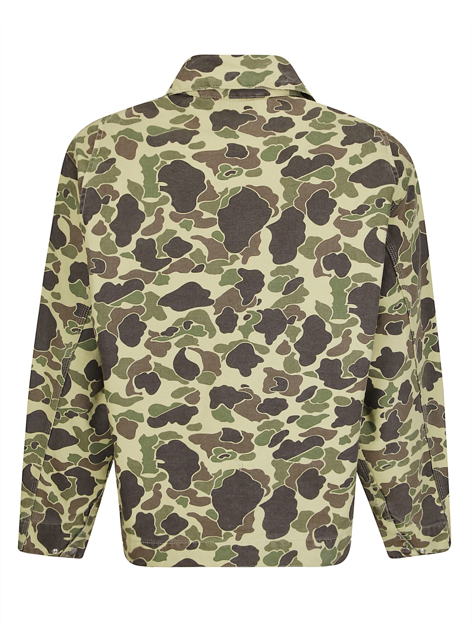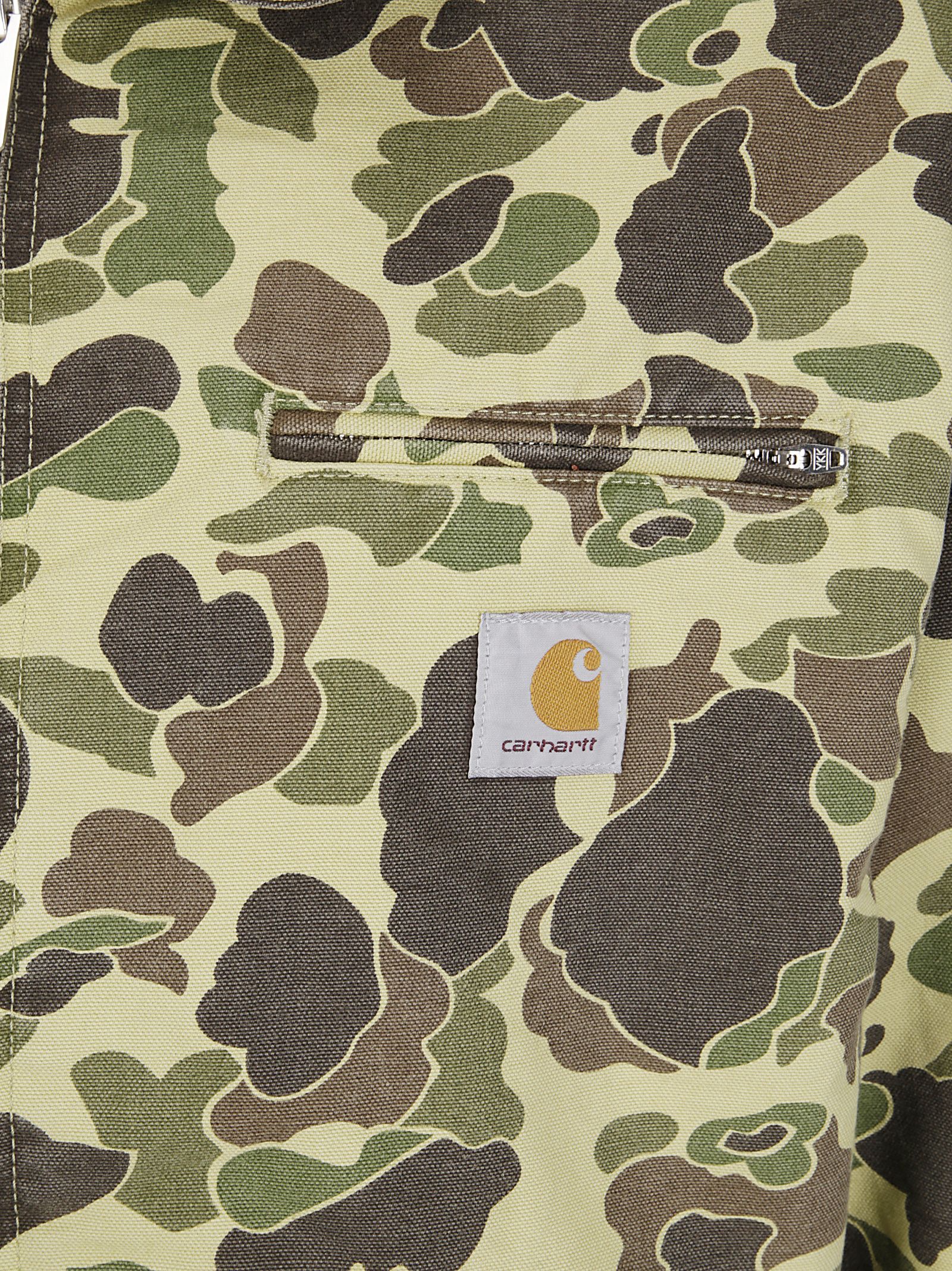 Jacke mit Allover-Camouflage-Print, Reißverschluss, Brusttasche mit Reißverschluss, zwei Seitentaschen.