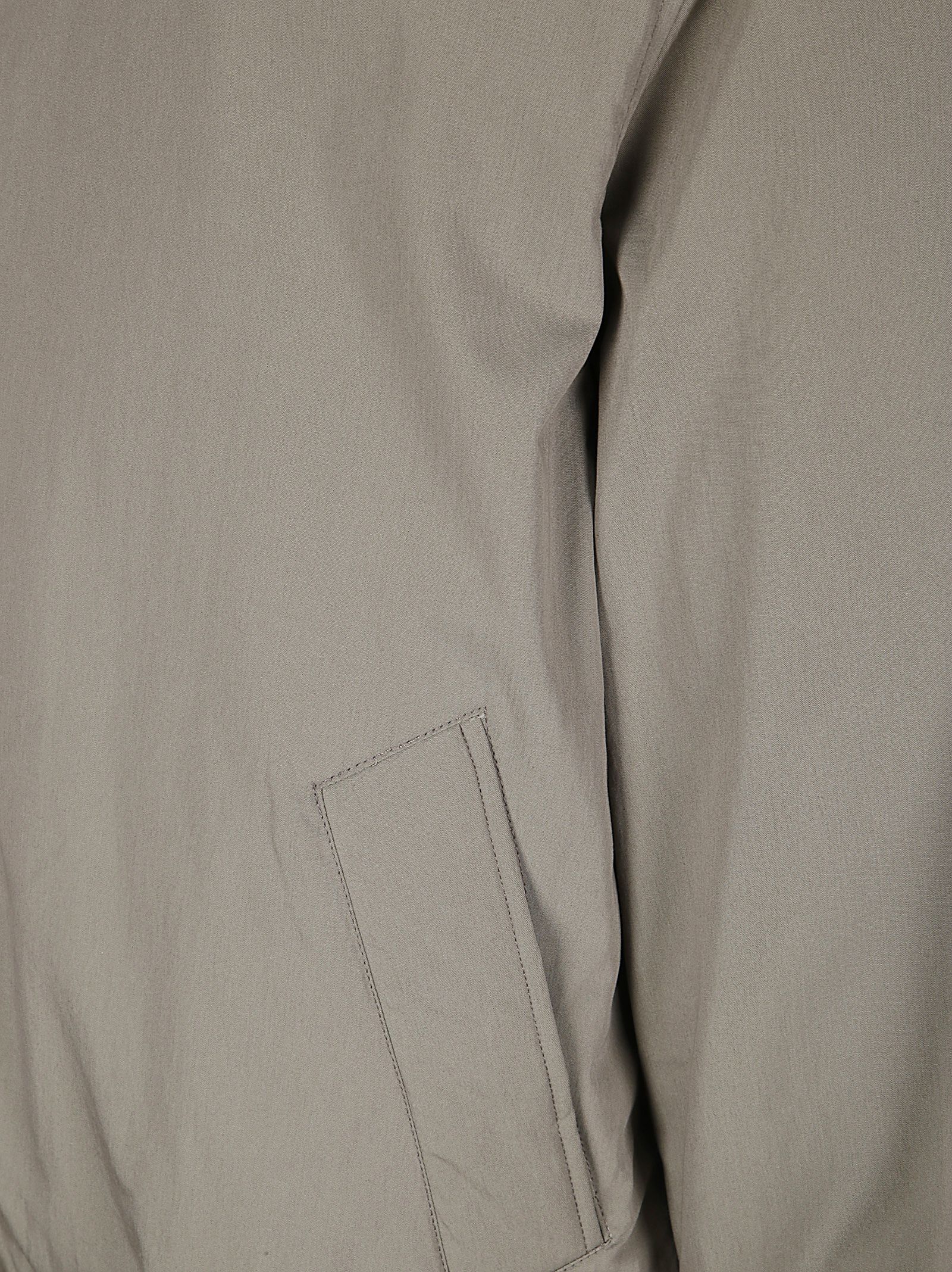 Jacke mit klassischem Kragen, Druckknopflasche am Hals, Frontverschluss mit Doppelschieber-Reißverschluss, normaler und kastenförmiger Passform.