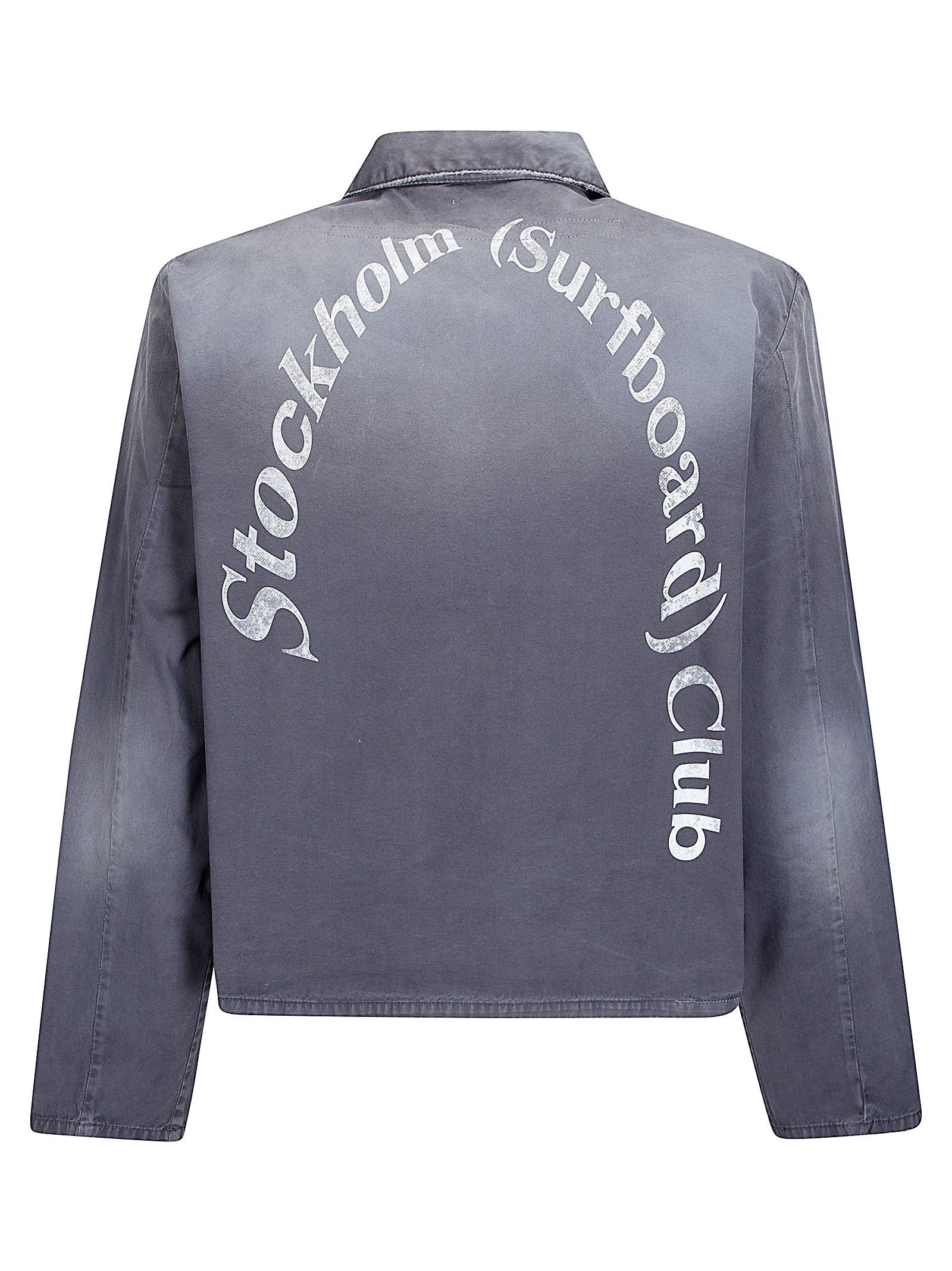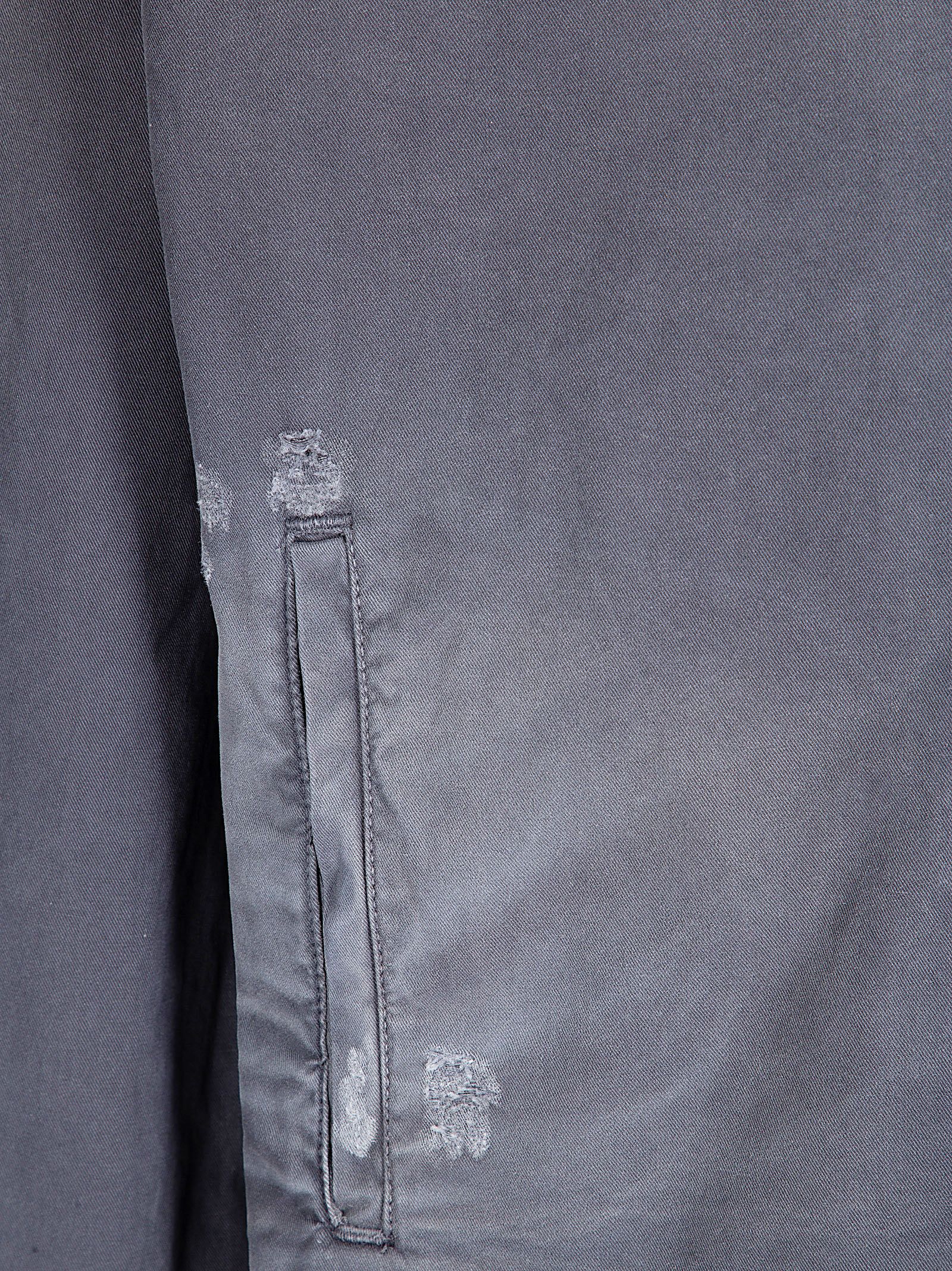 Leichte Baumwolljacke mit Acid-Wash-Effekt, Used-Look-Details, normalem Kragen, Reißverschluss, Seitentaschen und Logo auf der Rückseite.