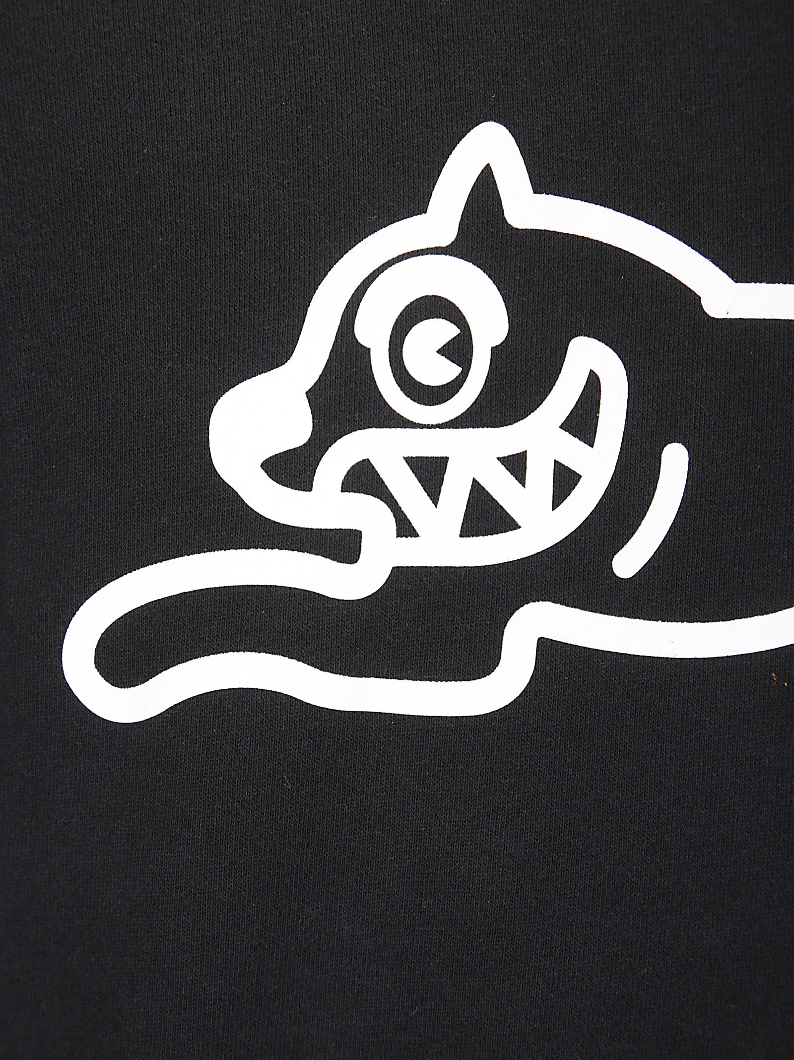 Kapuzenpullover mit Kordelzug, Frontprint, Kängurutasche und Logo auf dem Ärmel.