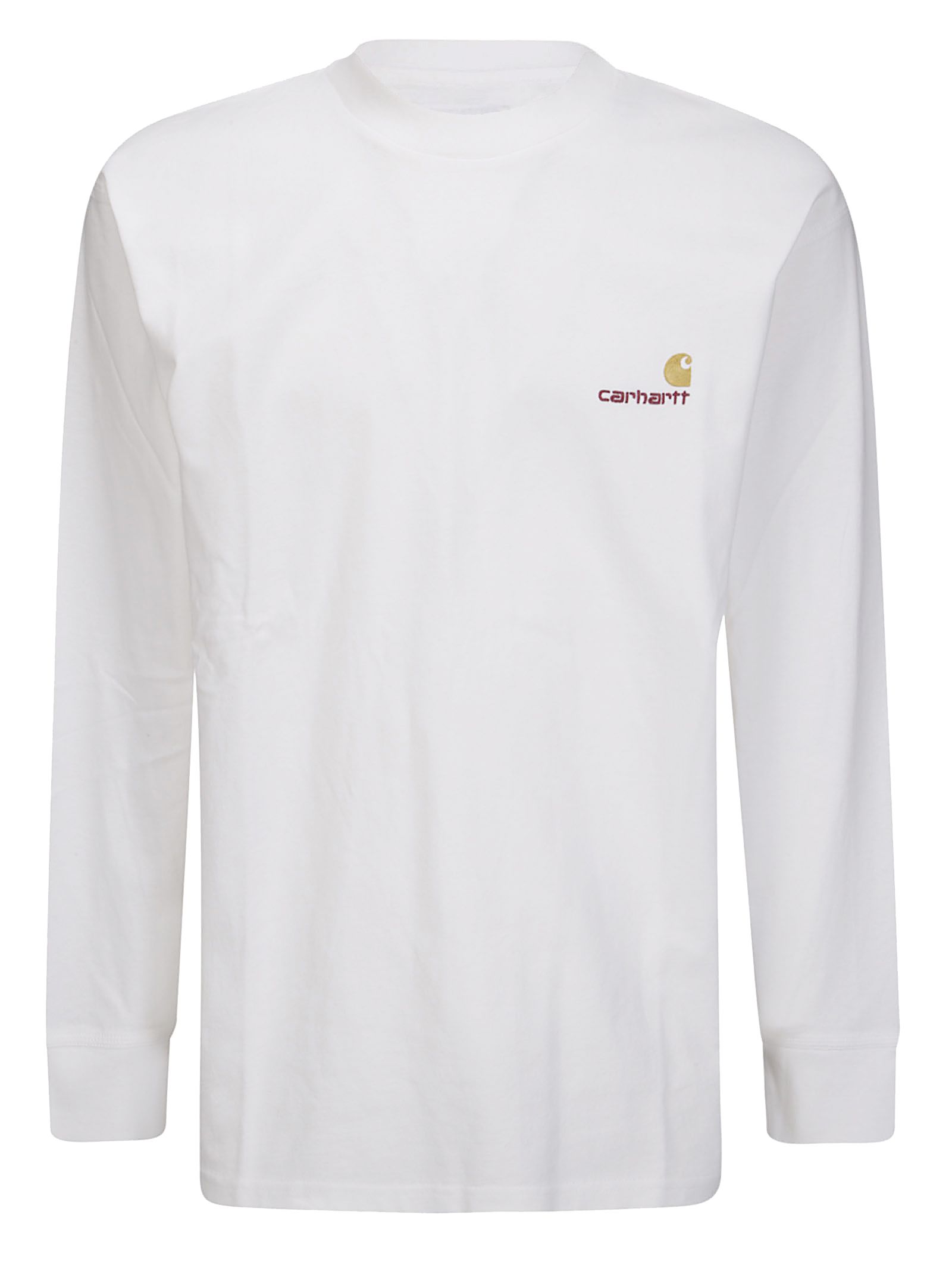T-shirt girocollo, maniche lunghe, scritta logo ricamata sul petto.