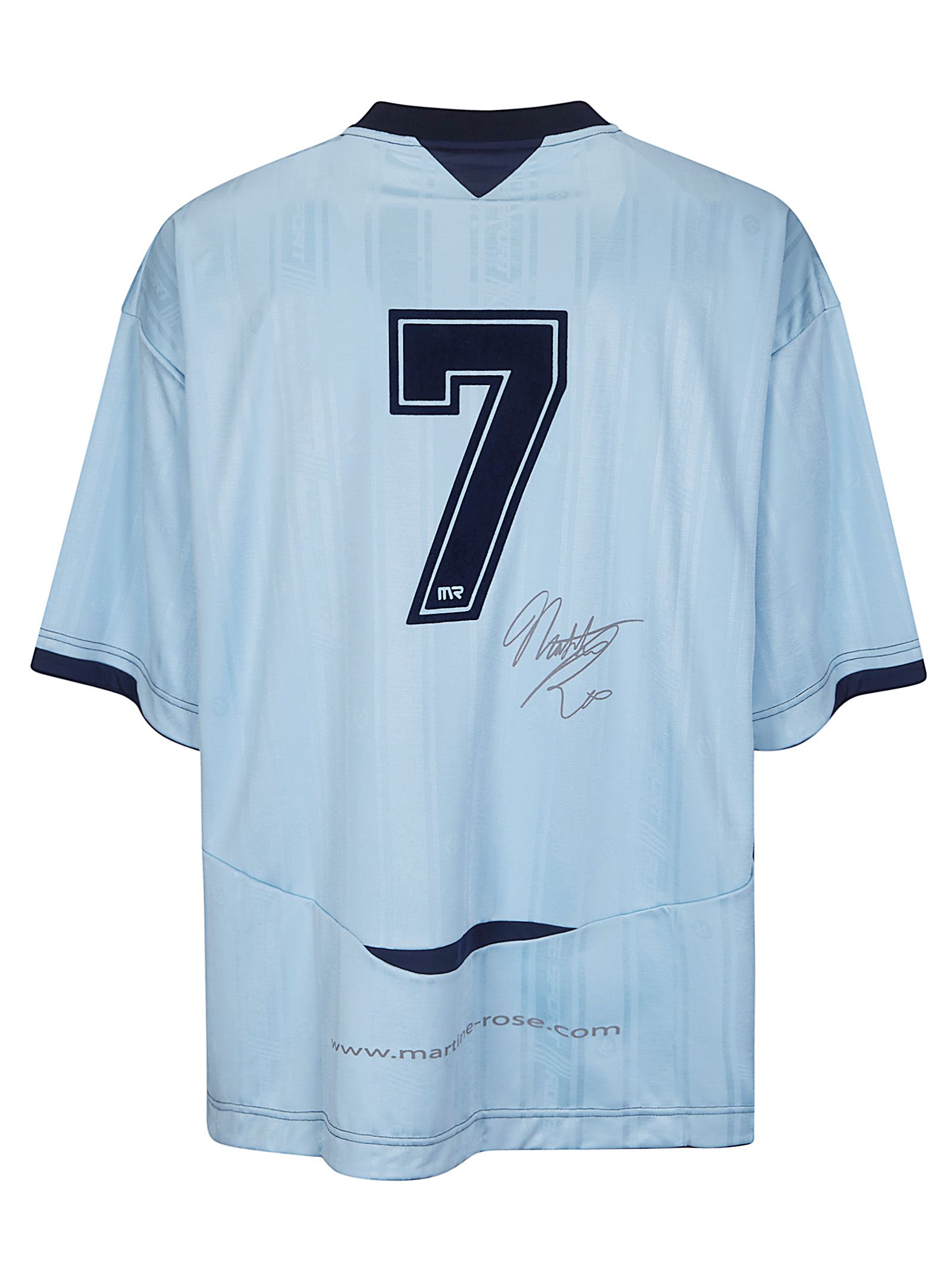 Tshirt scollo a V, mezze maniche, inserti a contrasto, stampa frontale e posteriore, logo sul davanti.