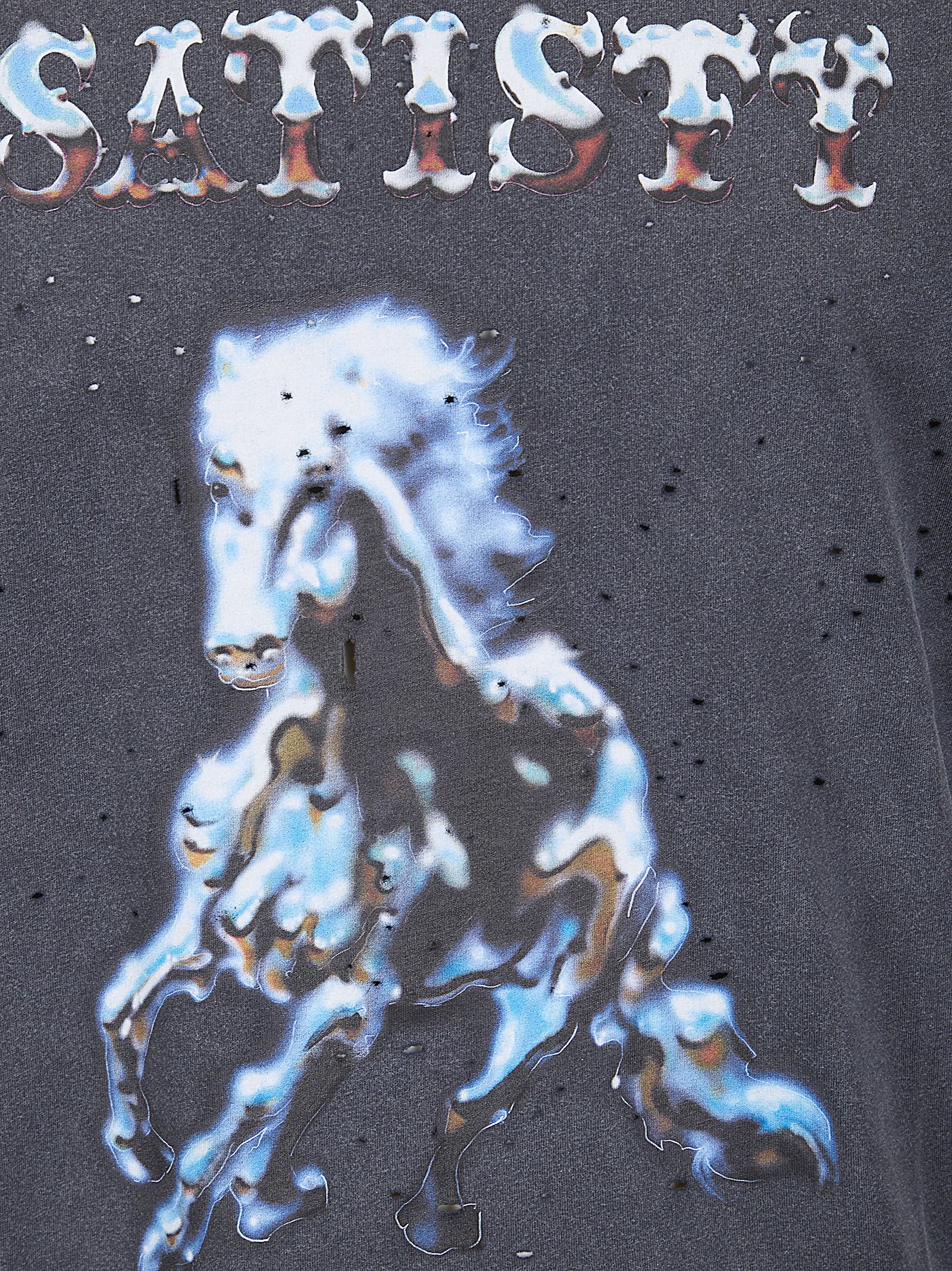 Tshirt in cotone organico, stampa frontale, fit comodo, design effetto rovinato, stampa frontale, cooling.