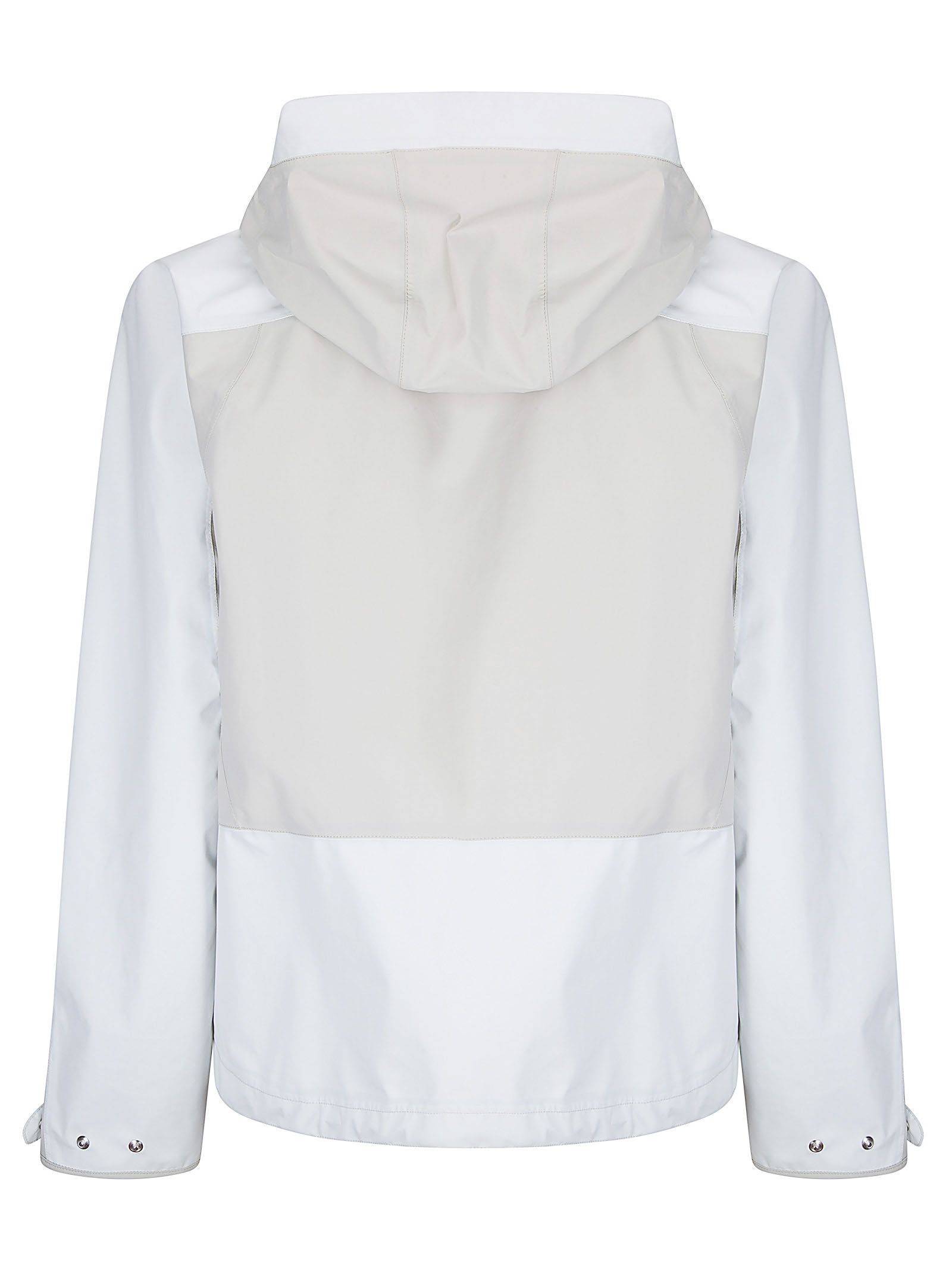 Giacca anti pioggia leggera con cappuccio ampio e colletto alto, zip piatta, tasche laterali, fondo maniche restringibile con bottoni.