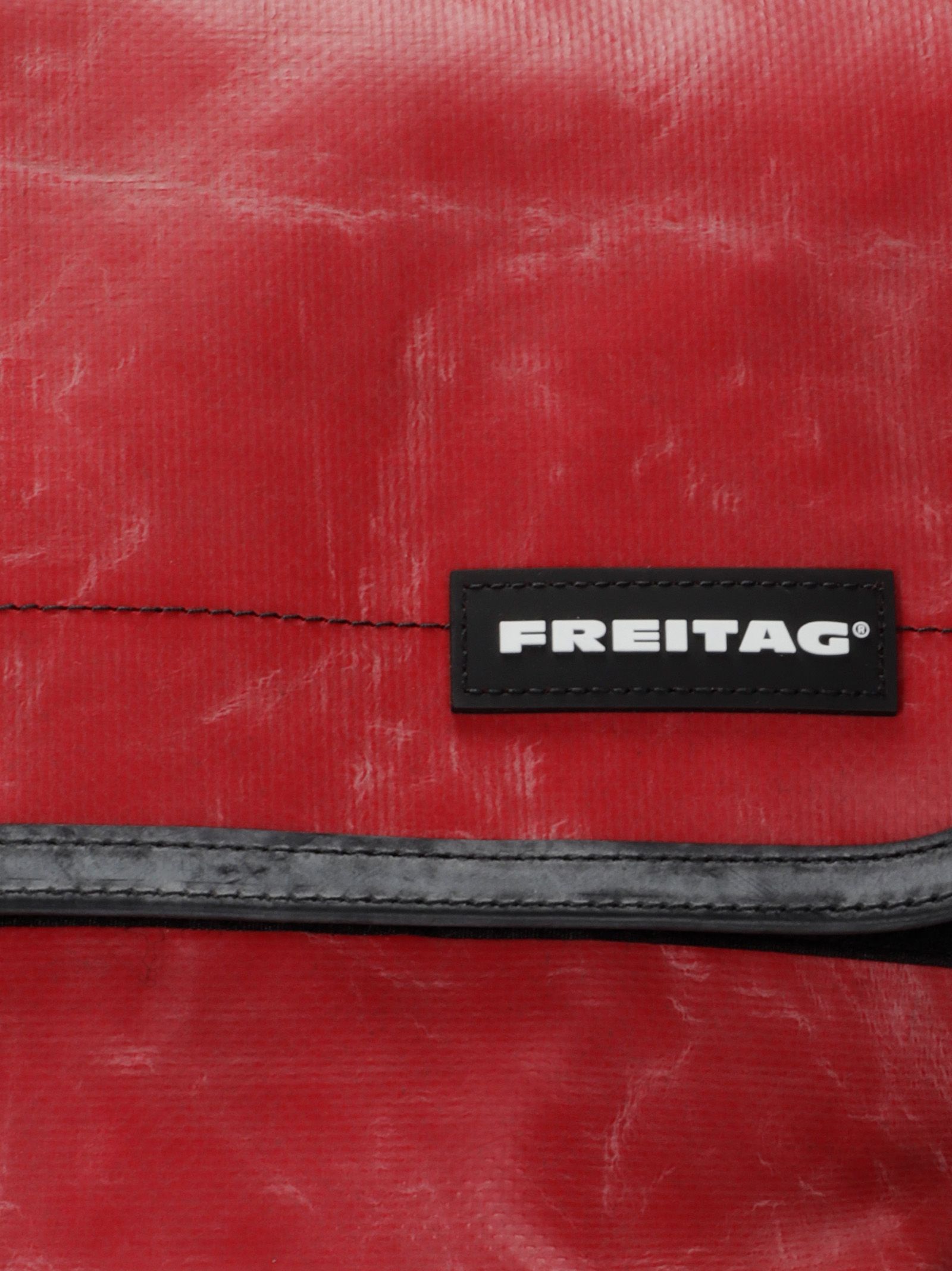 Große Umhängetasche mit Geldbörse und Riemenverschluss, kontrastierendem Logo und Besatz, einem Fach mit Innentaschen, Außentasche mit Reißverschluss.