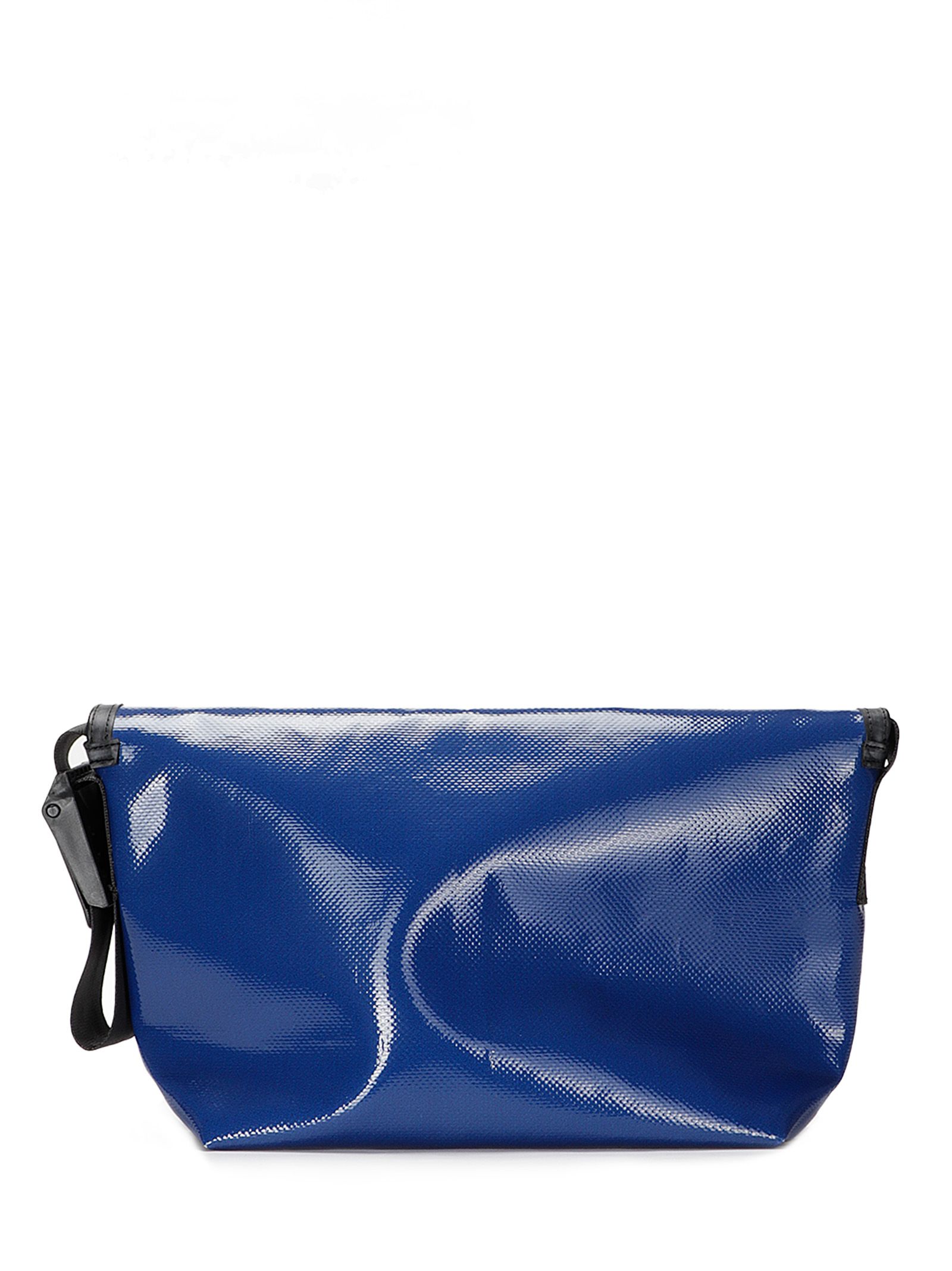 Große Umhängetasche mit Geldbörse und Riemenverschluss, kontrastierendem Logo und Besatz, einem Fach mit Innentaschen, Außentasche mit Reißverschluss.