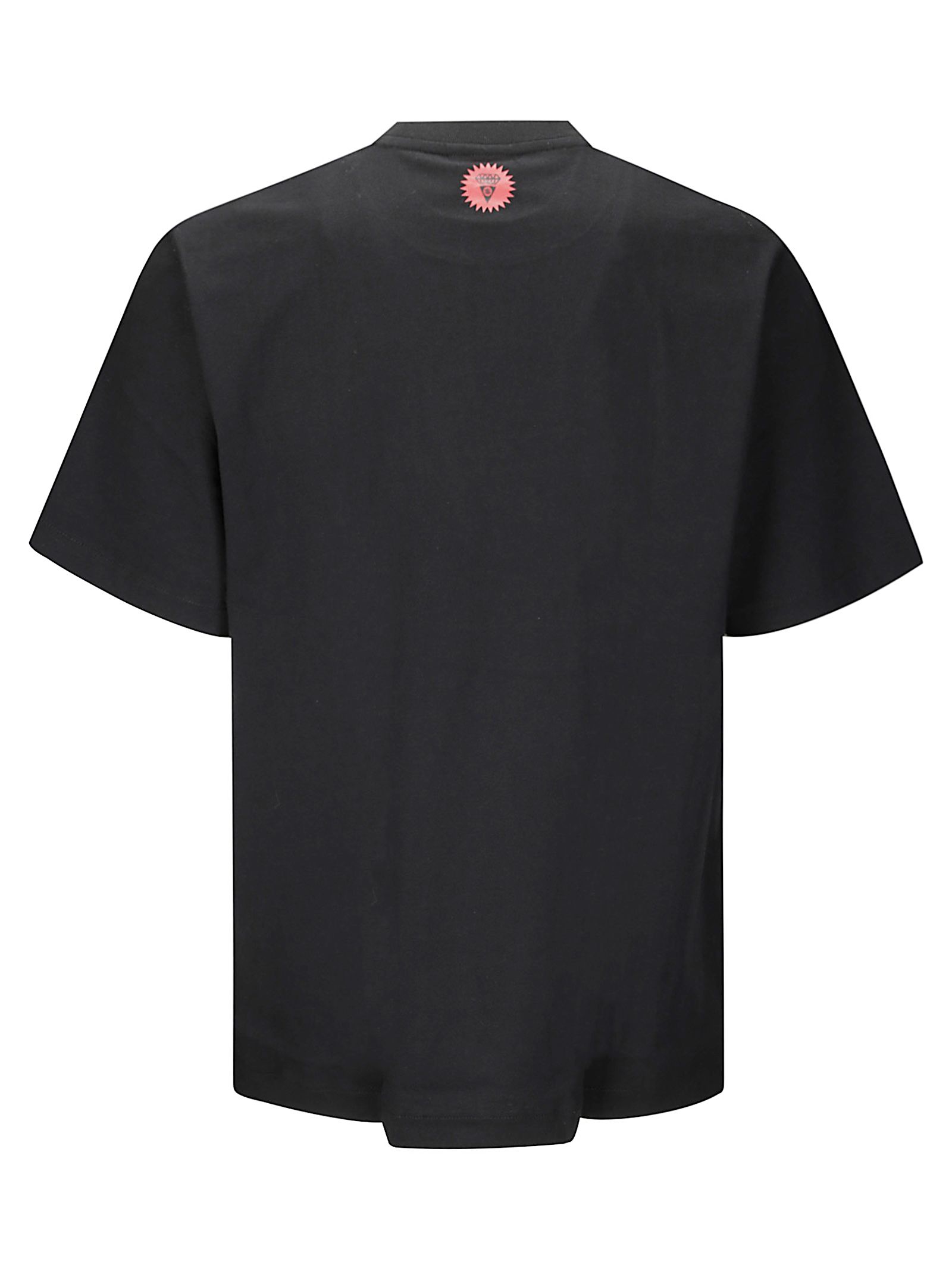 Crew-neck T-shirt, short sleeves, front print, logo applied on the sleeve.