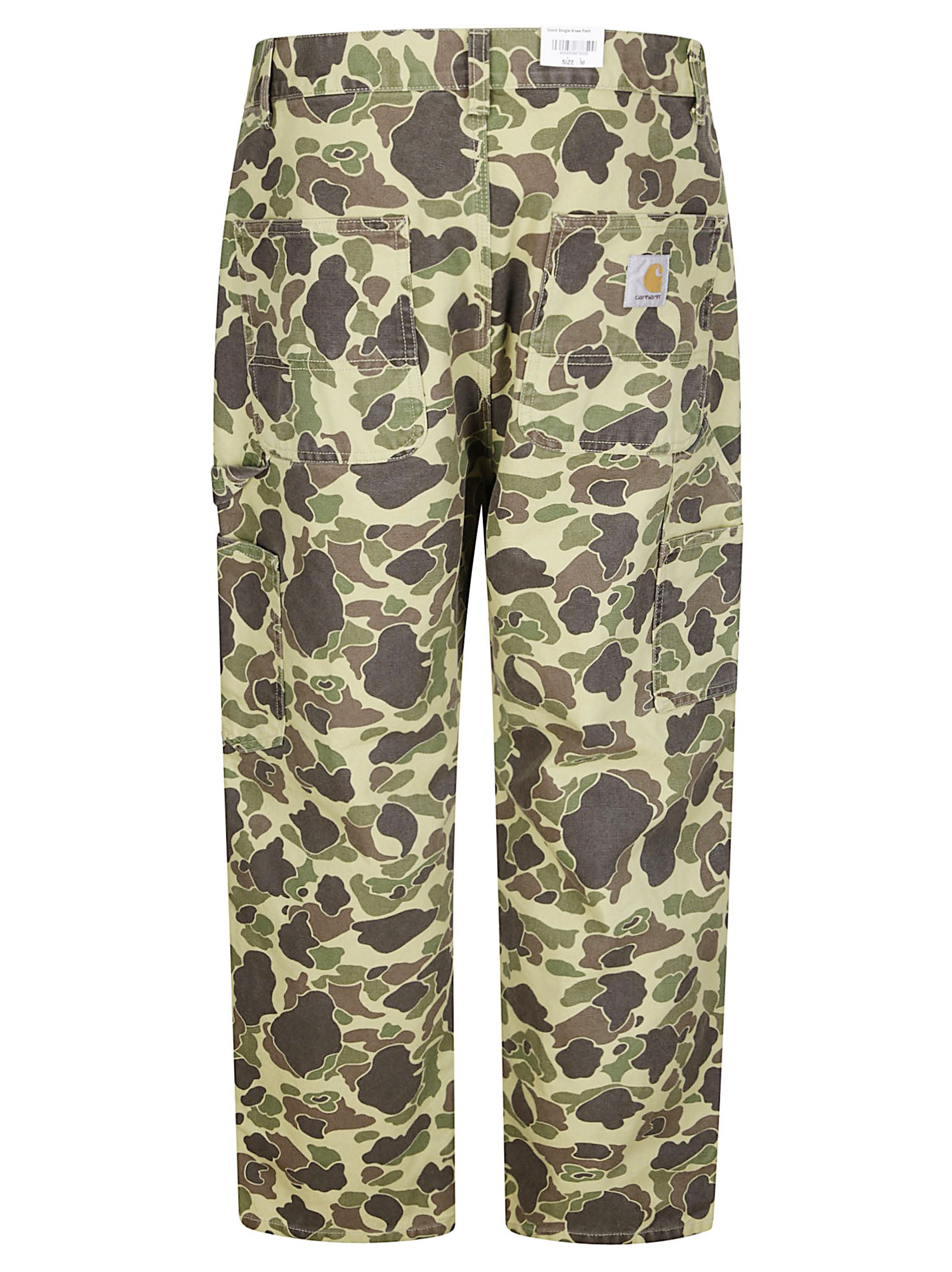 Military pattern trousers with side pockets, back pockets, straight fit, loose fit.