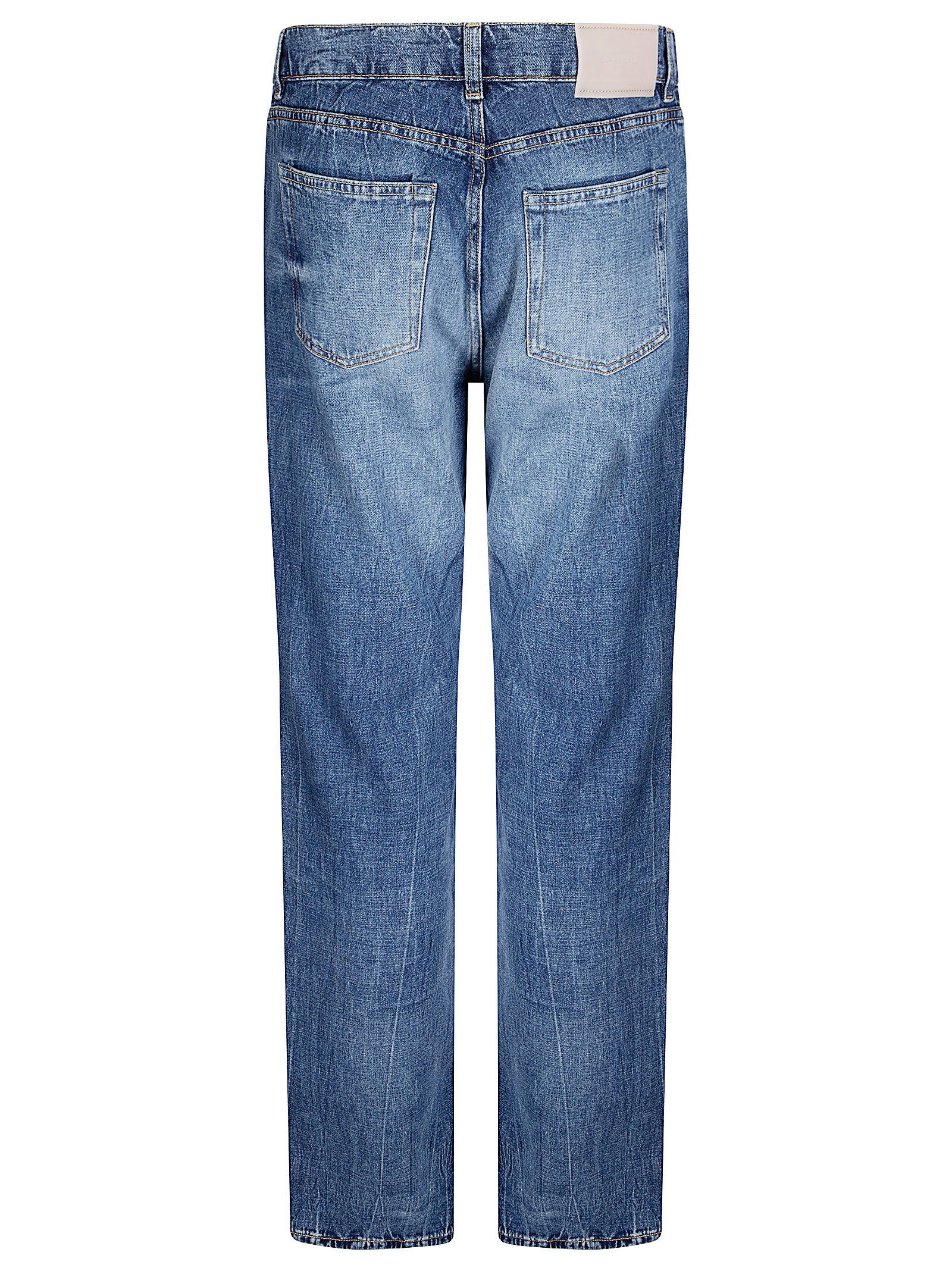 Straight-leg denim jeans, five pockets, waistband with belt loops, button and zip fastening, straight hem.