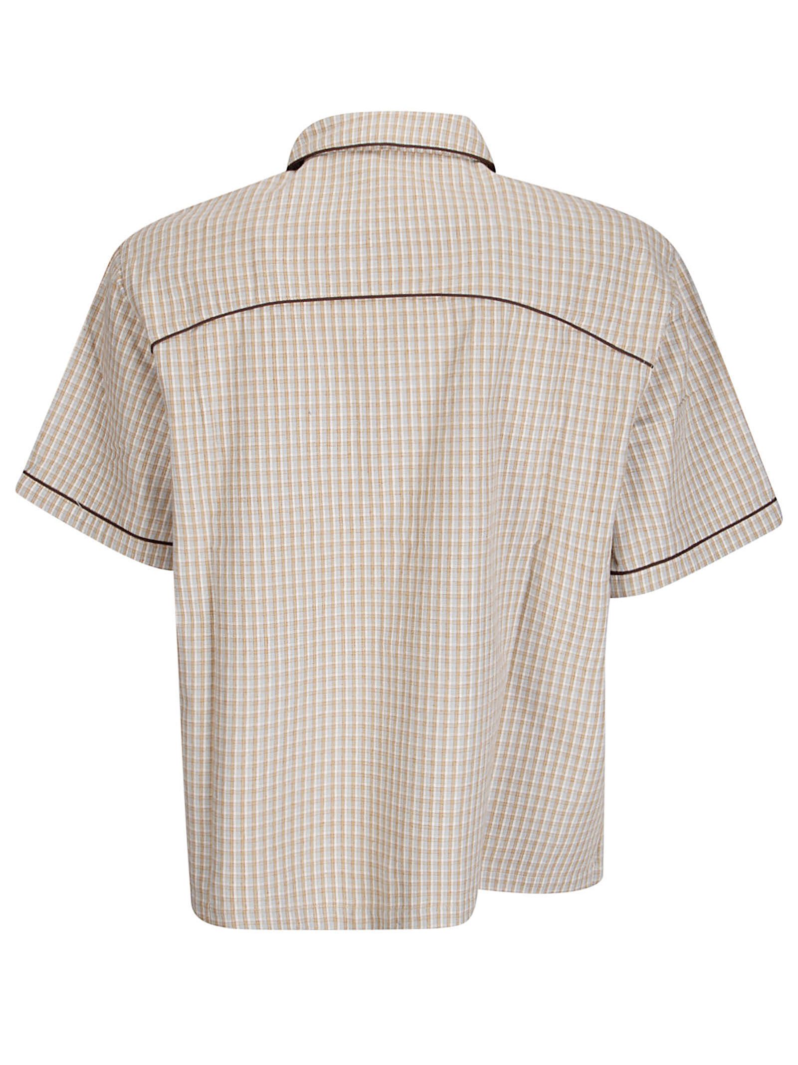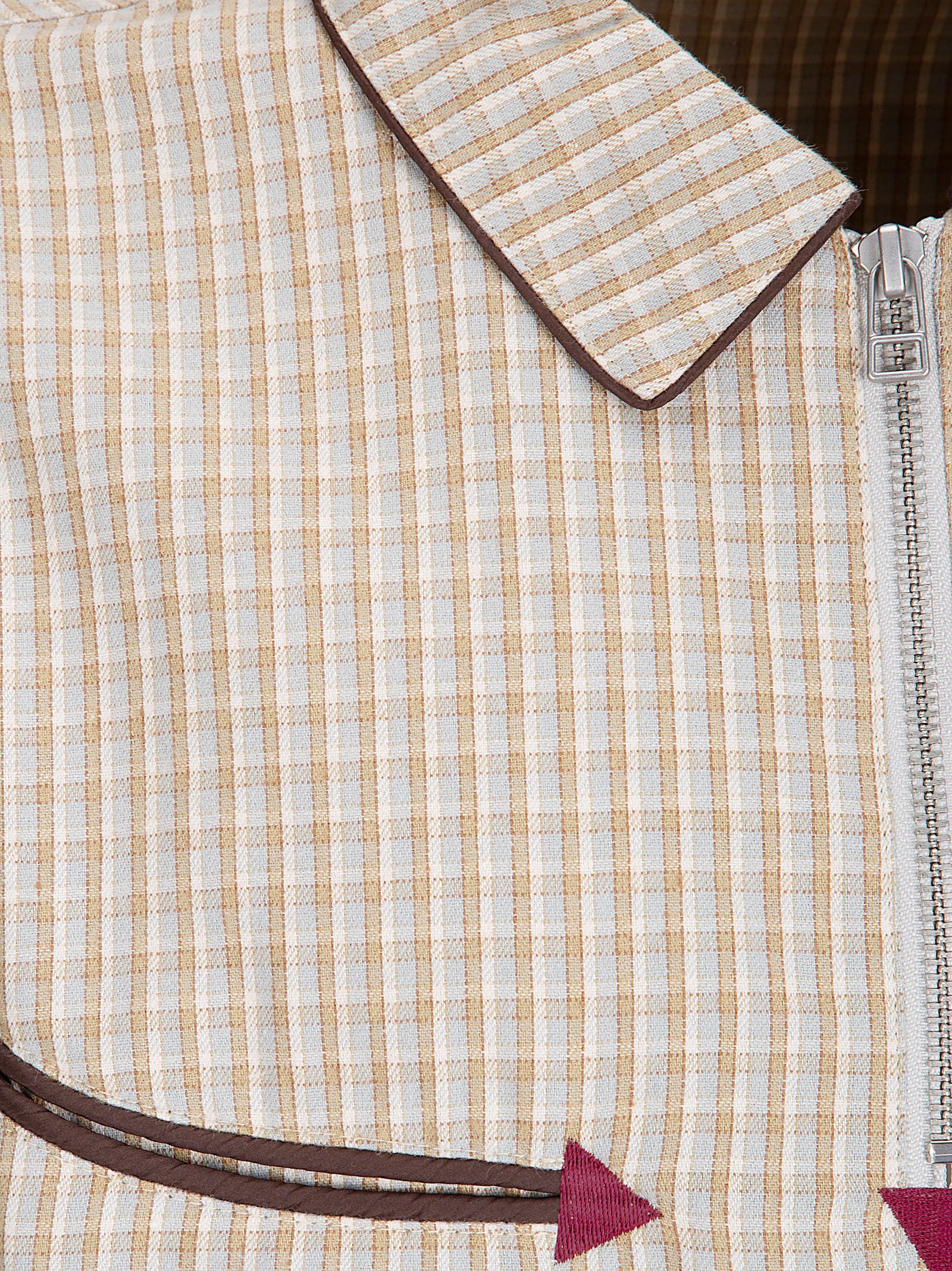 Short-sleeved shirt with a western design, thick cotton fabric, front zip fastening, asymmetrical pockets.