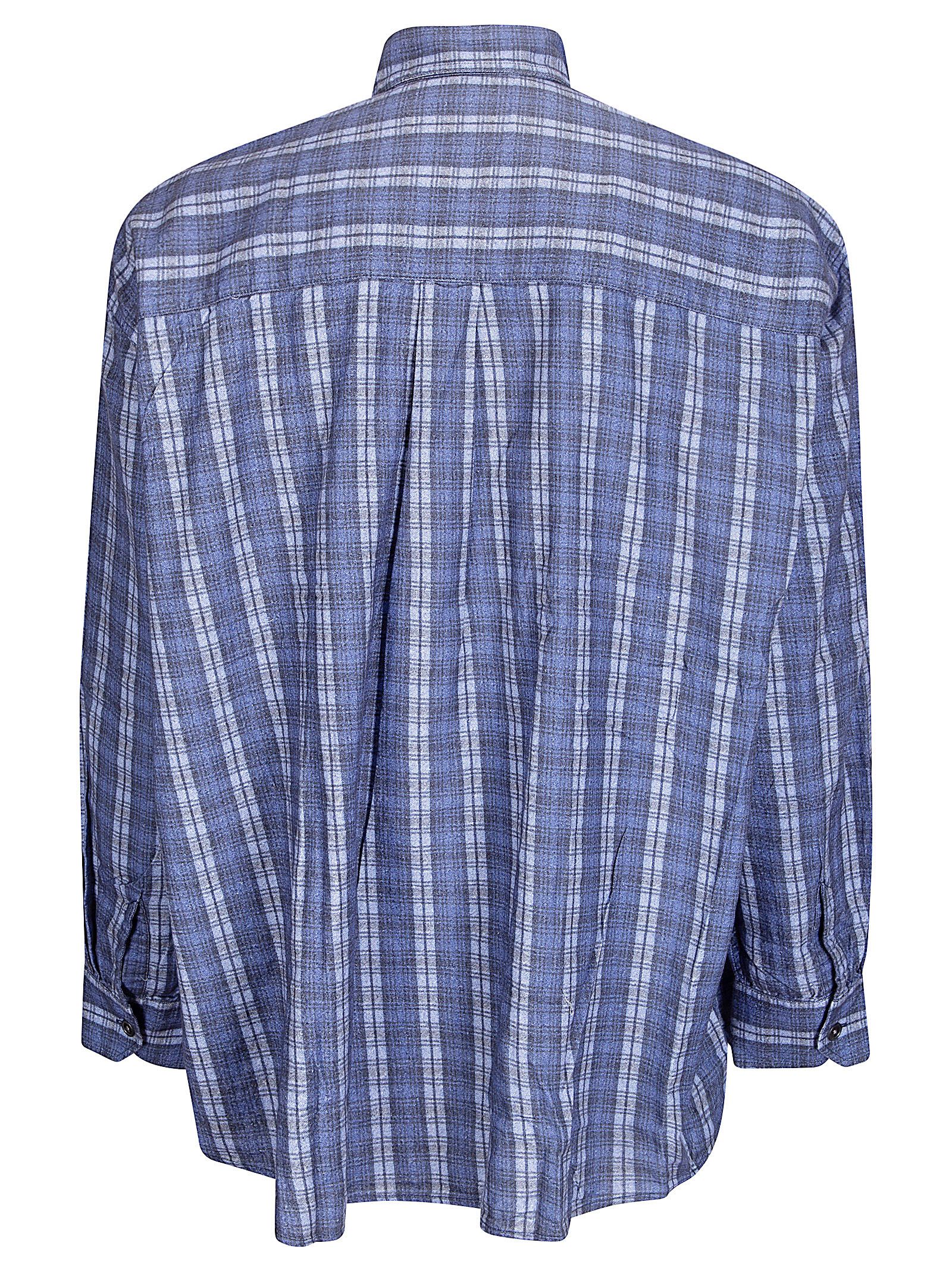 Oversized shirt in thick fabric, regular collar, button closure, front pocket.