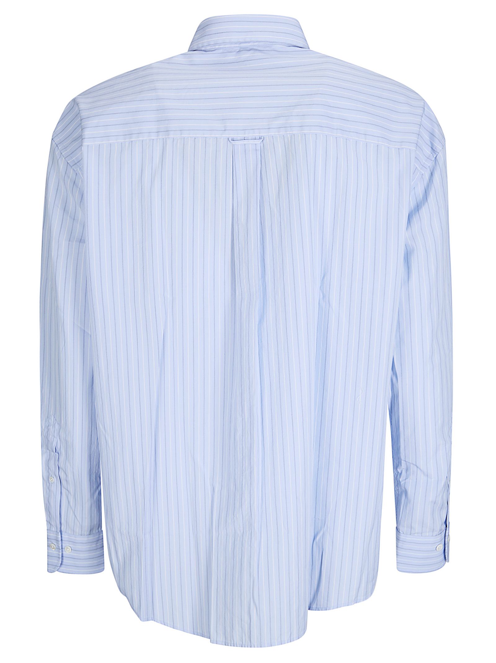 Long-sleeved shirt with front pocket, back yoke with center pleat and adjustable cuff with buttons.