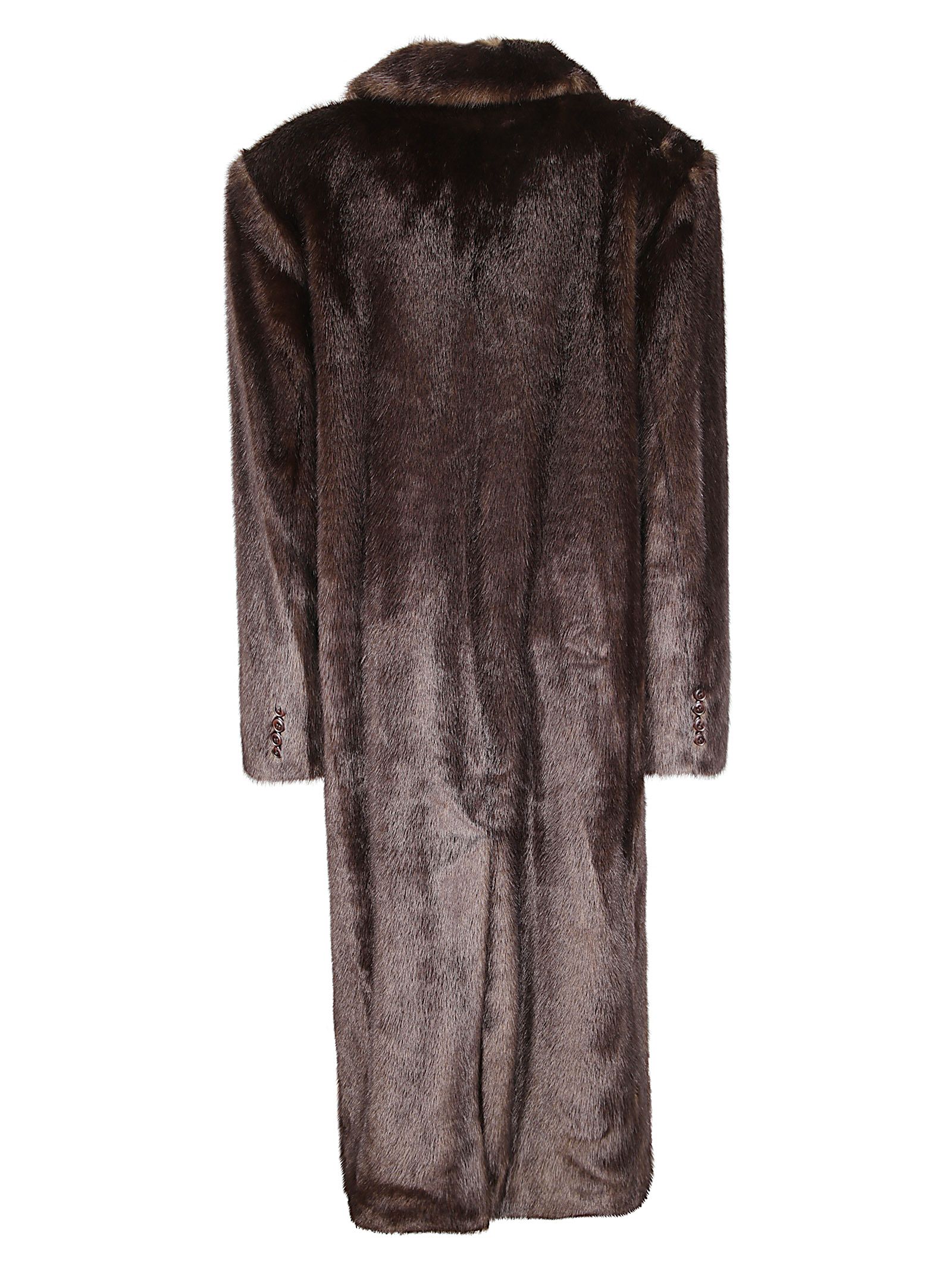 Double-breasted fur coat, long sleeves, button closure, straight hem, faux fur, loose fit.
