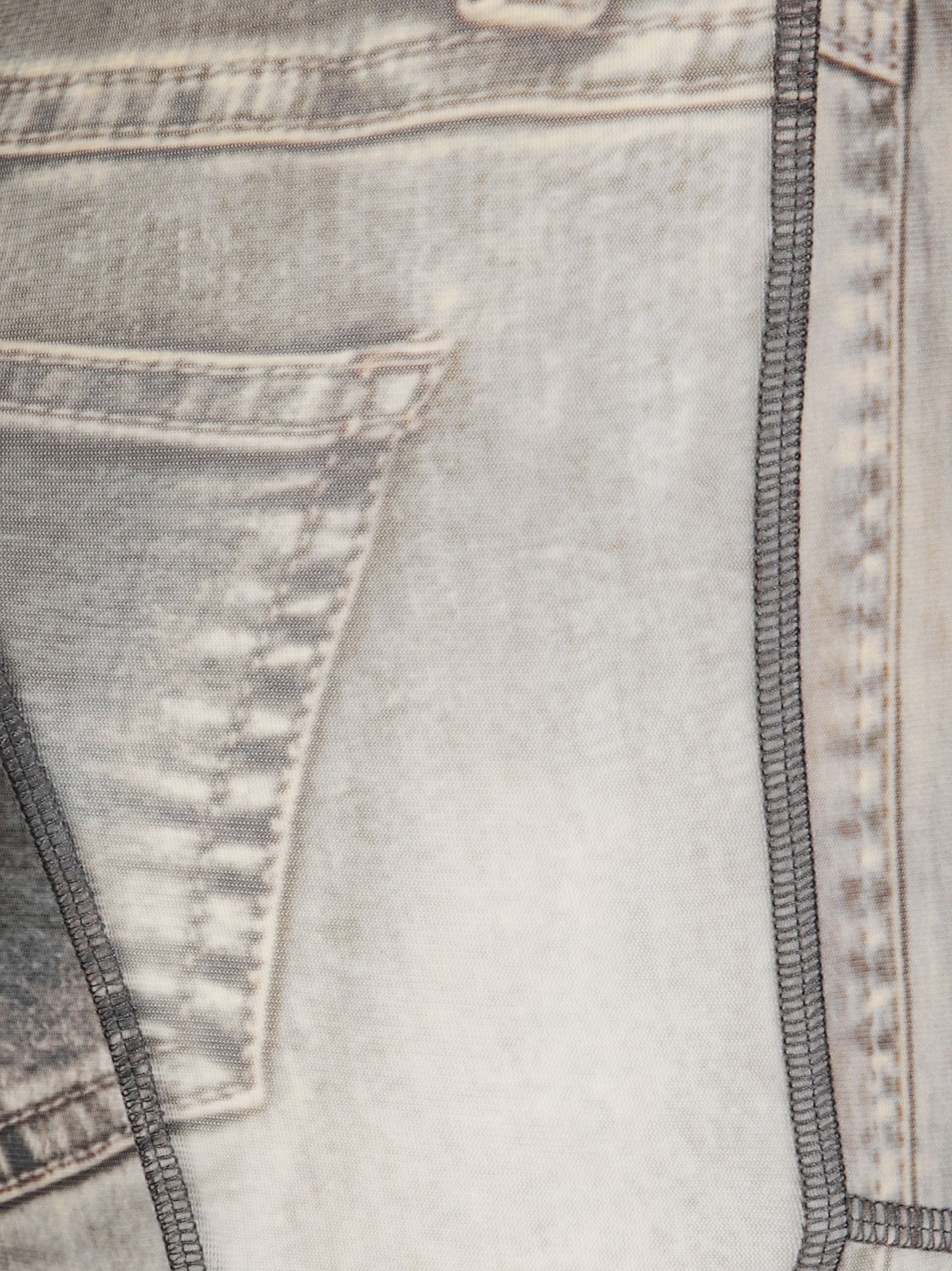 Leggings with elasticated waistband, pleated fabric on the front and back of the yoke, jeans pattern.