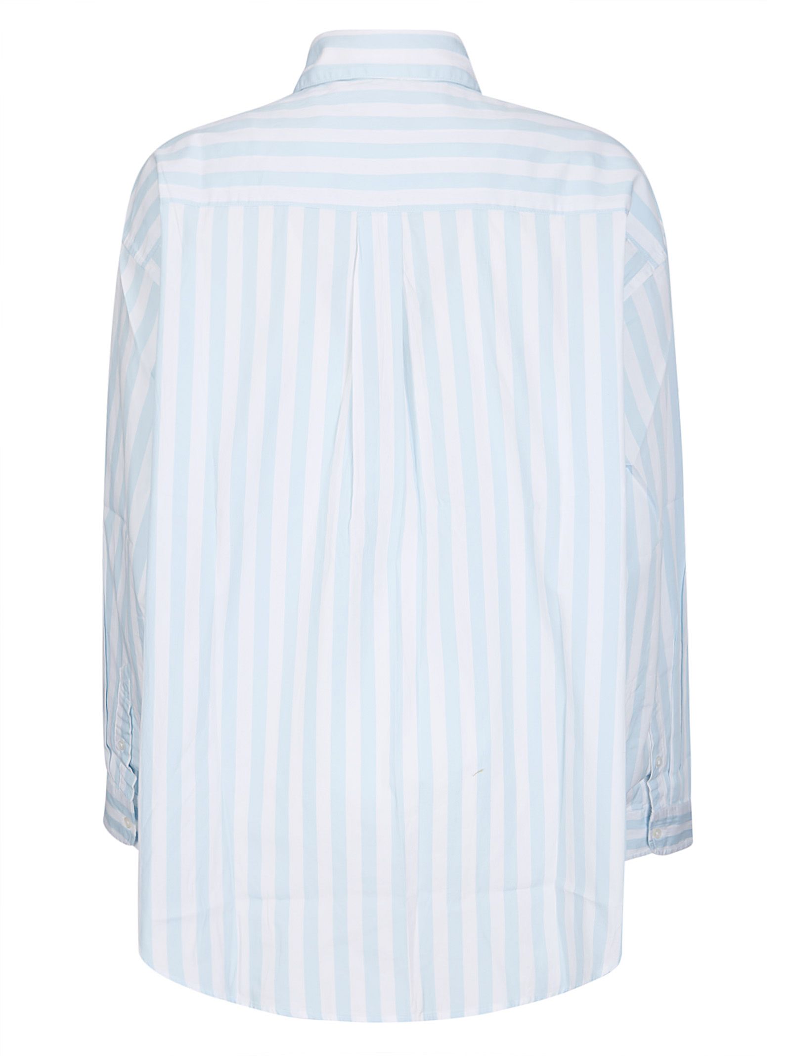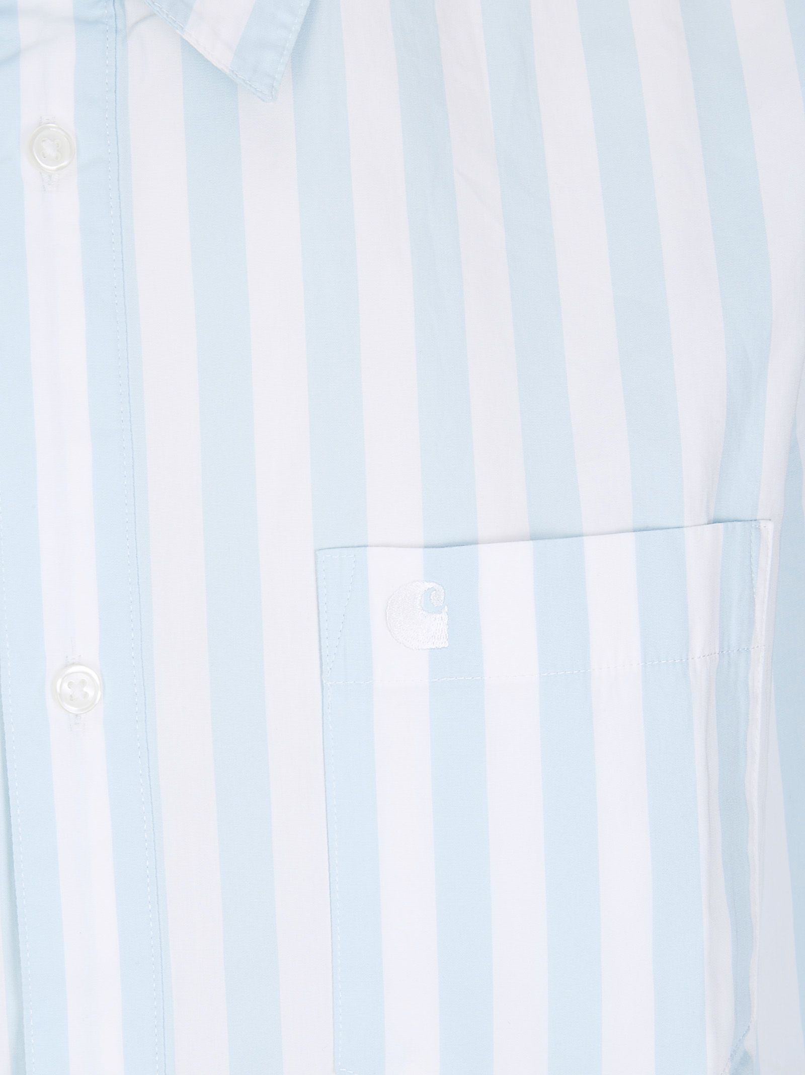 Camicia con colletto classico, chiusura con bottoni, tasca sul petto con logo ricamato, vestibiltà ampia.