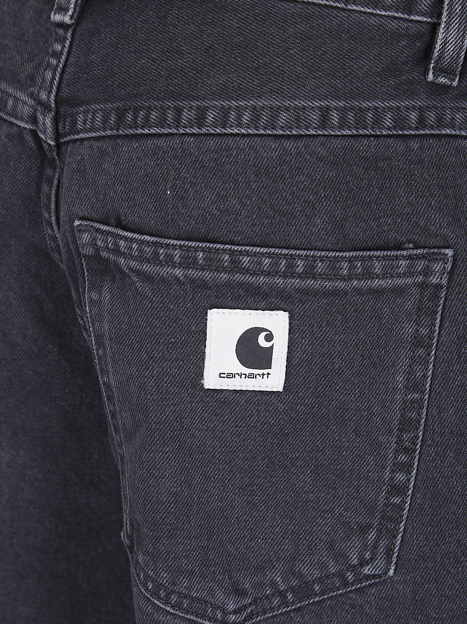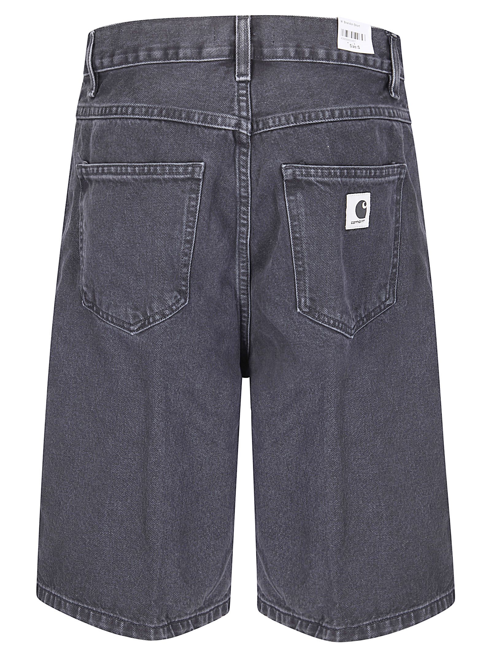 Pantaloni corti in denim, cinque tasche, chiusura con cerniera, vestibilità ampia e dritta con vita bassa, etichetta quadrata in tessuto sul retro.