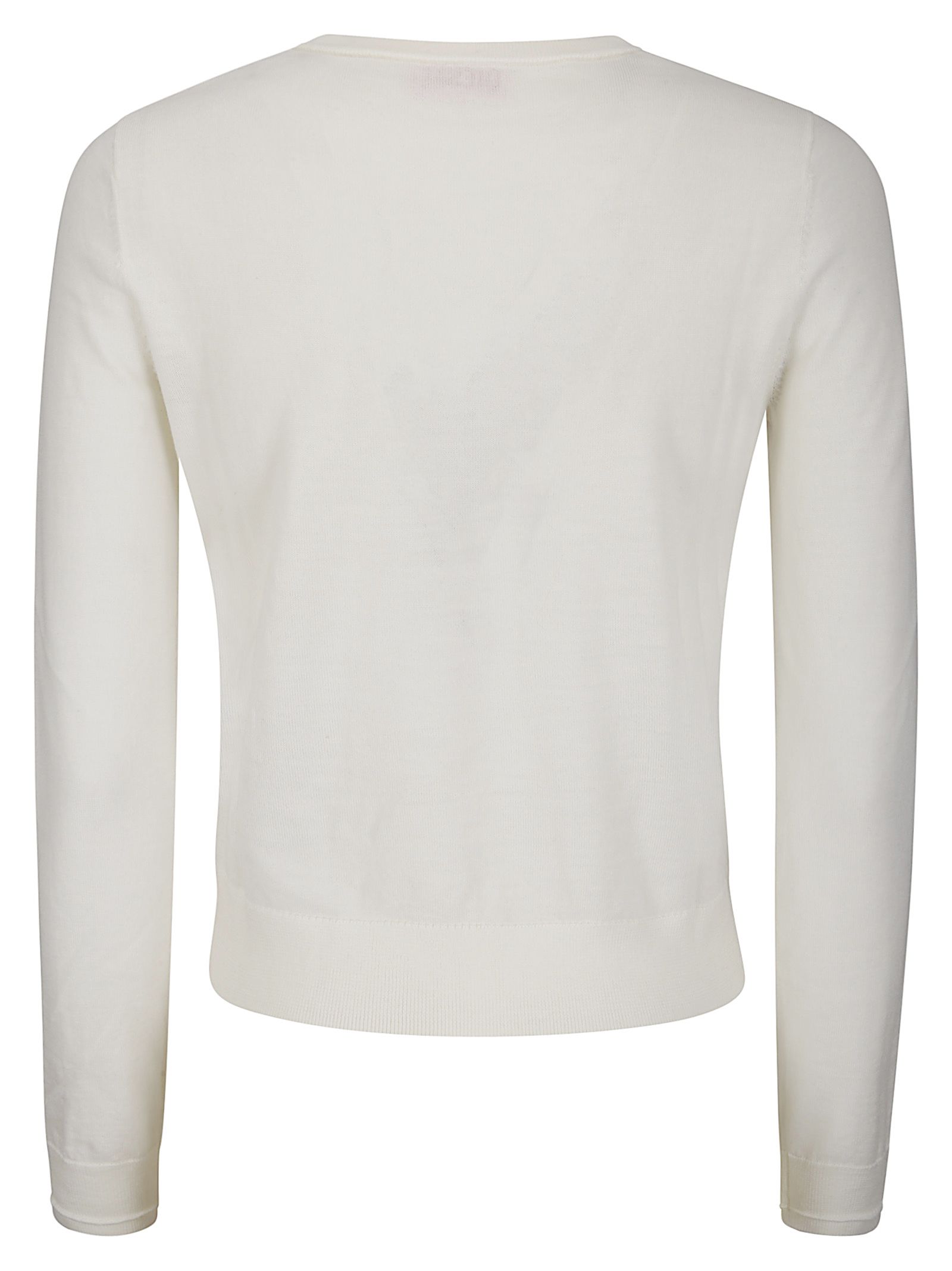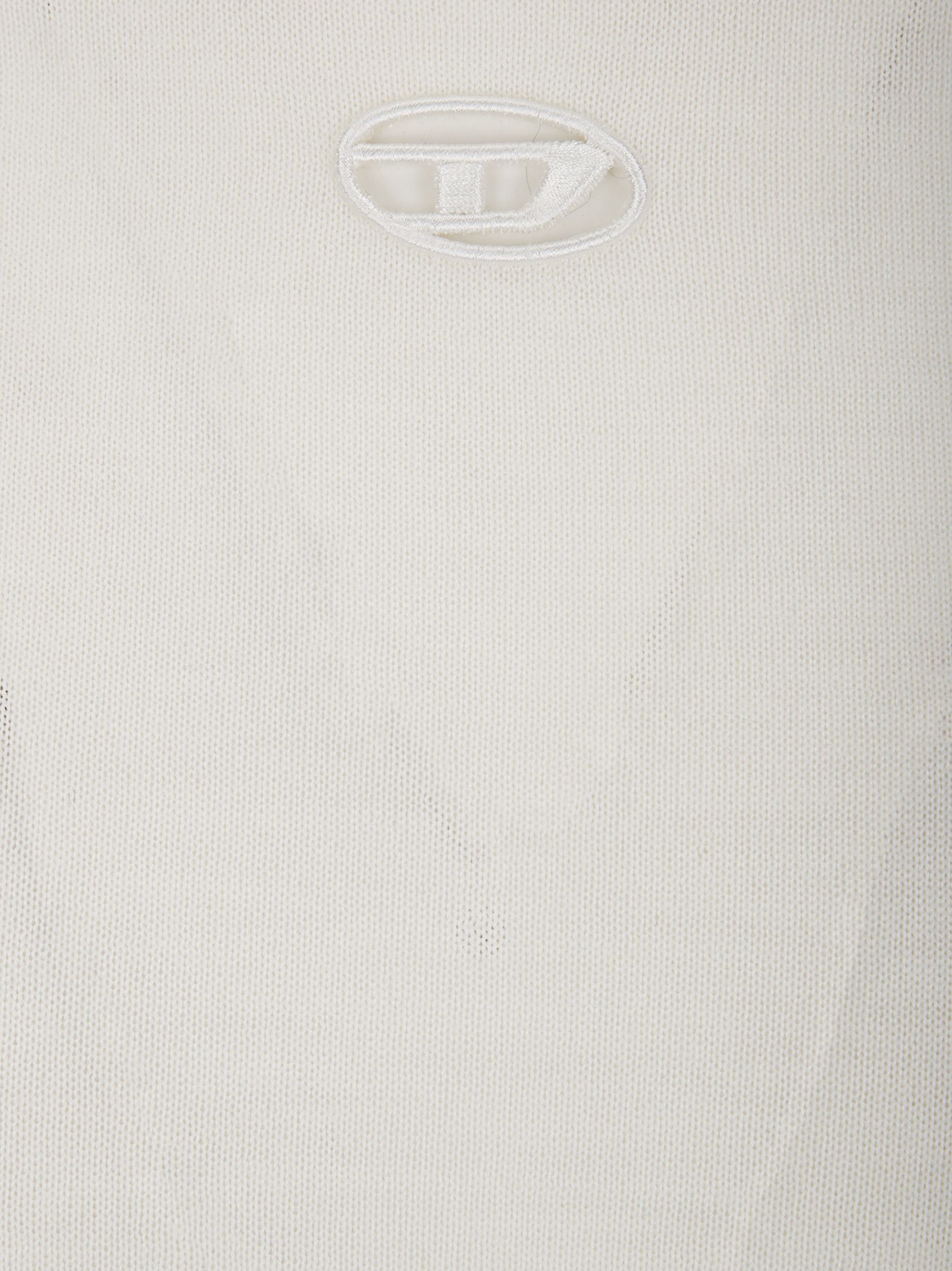 Round neck wool sweater, slim fit, logo application on the chest, cut-out detail.