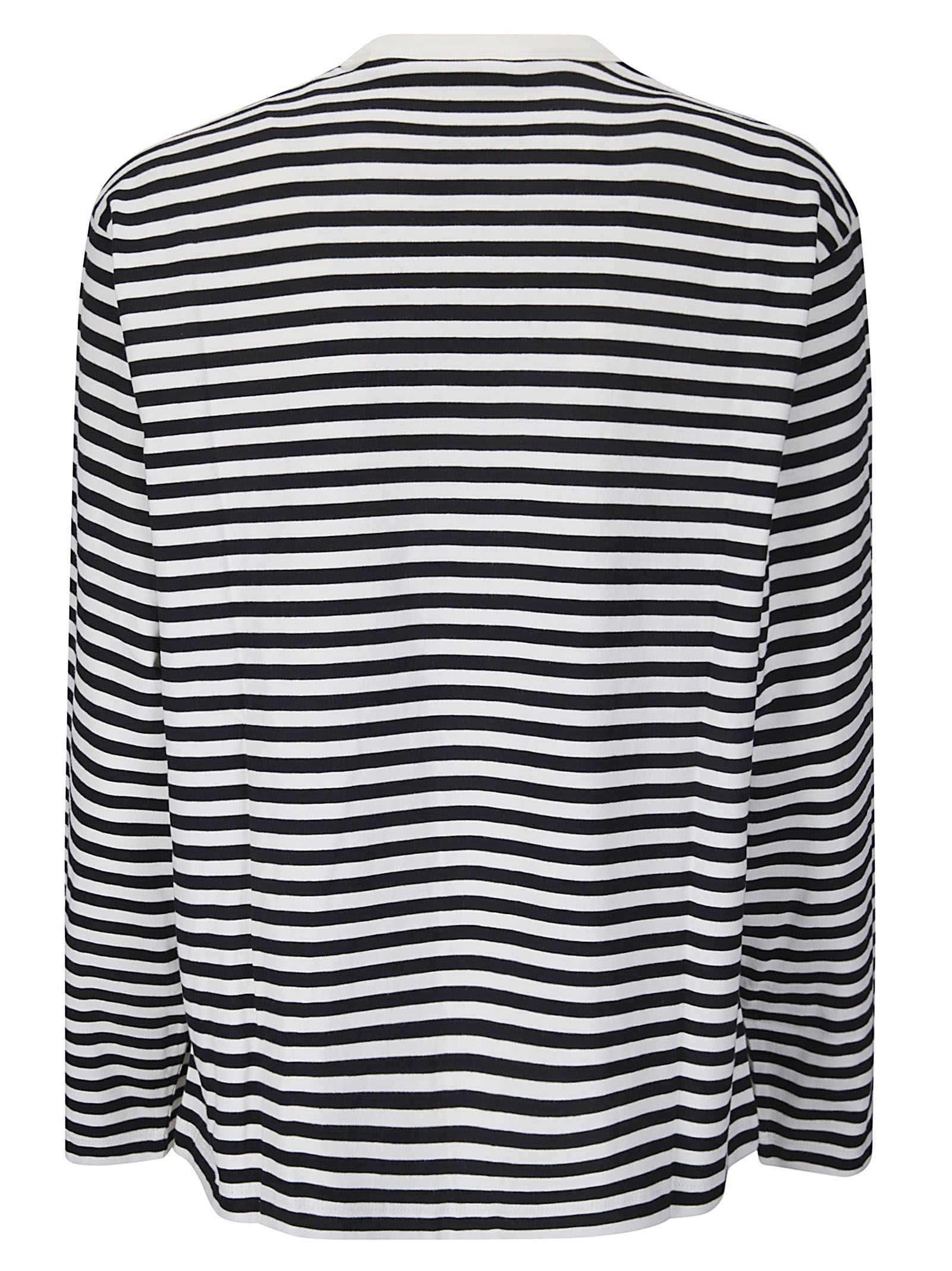 Loose-fit T-shirt made of striped cotton jersey, round neck, long sleeves, embroidered graphics.