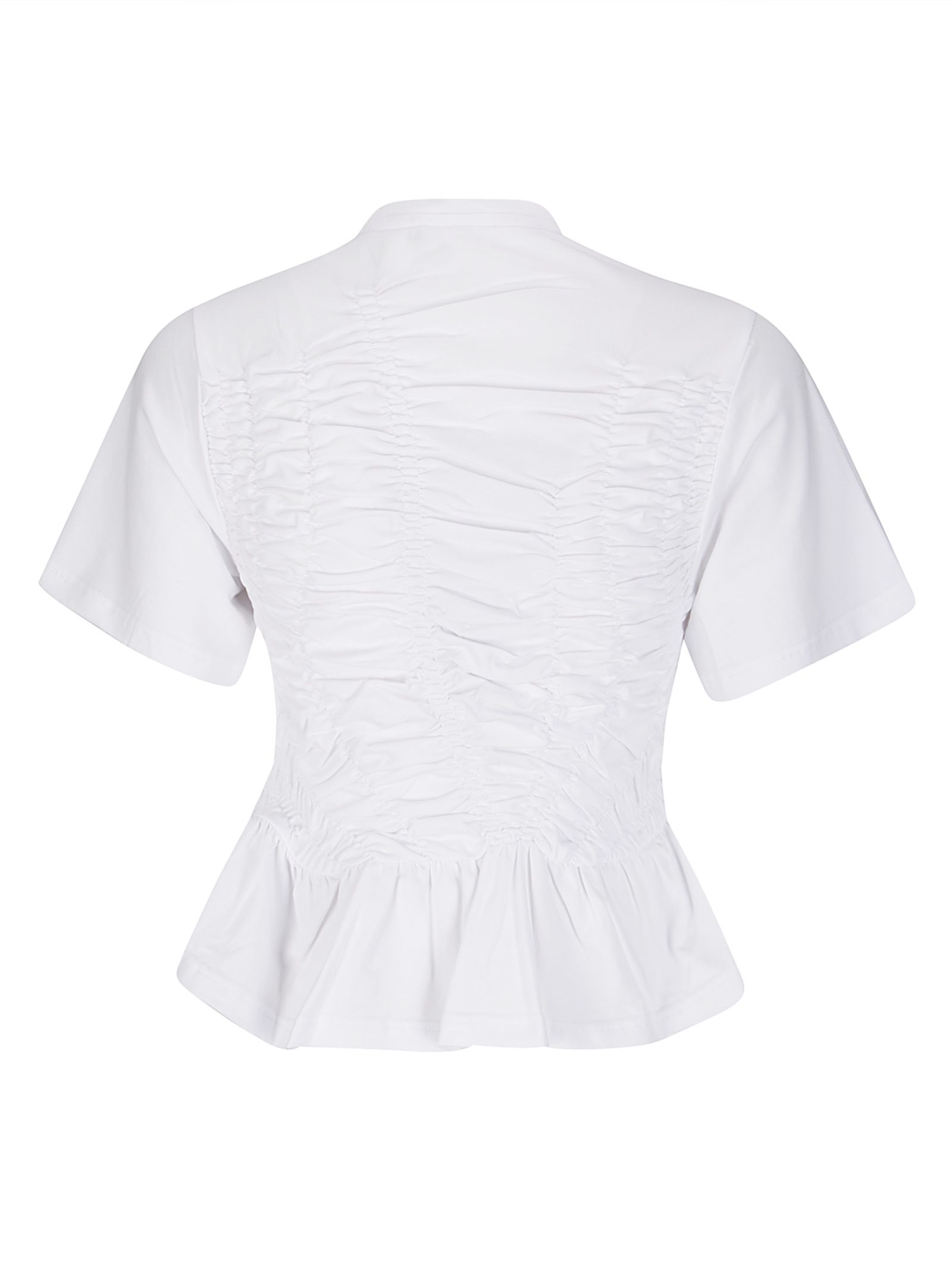 Crew neck T-shirt, short sleeves, stretch cotton with gathers, slim fit.