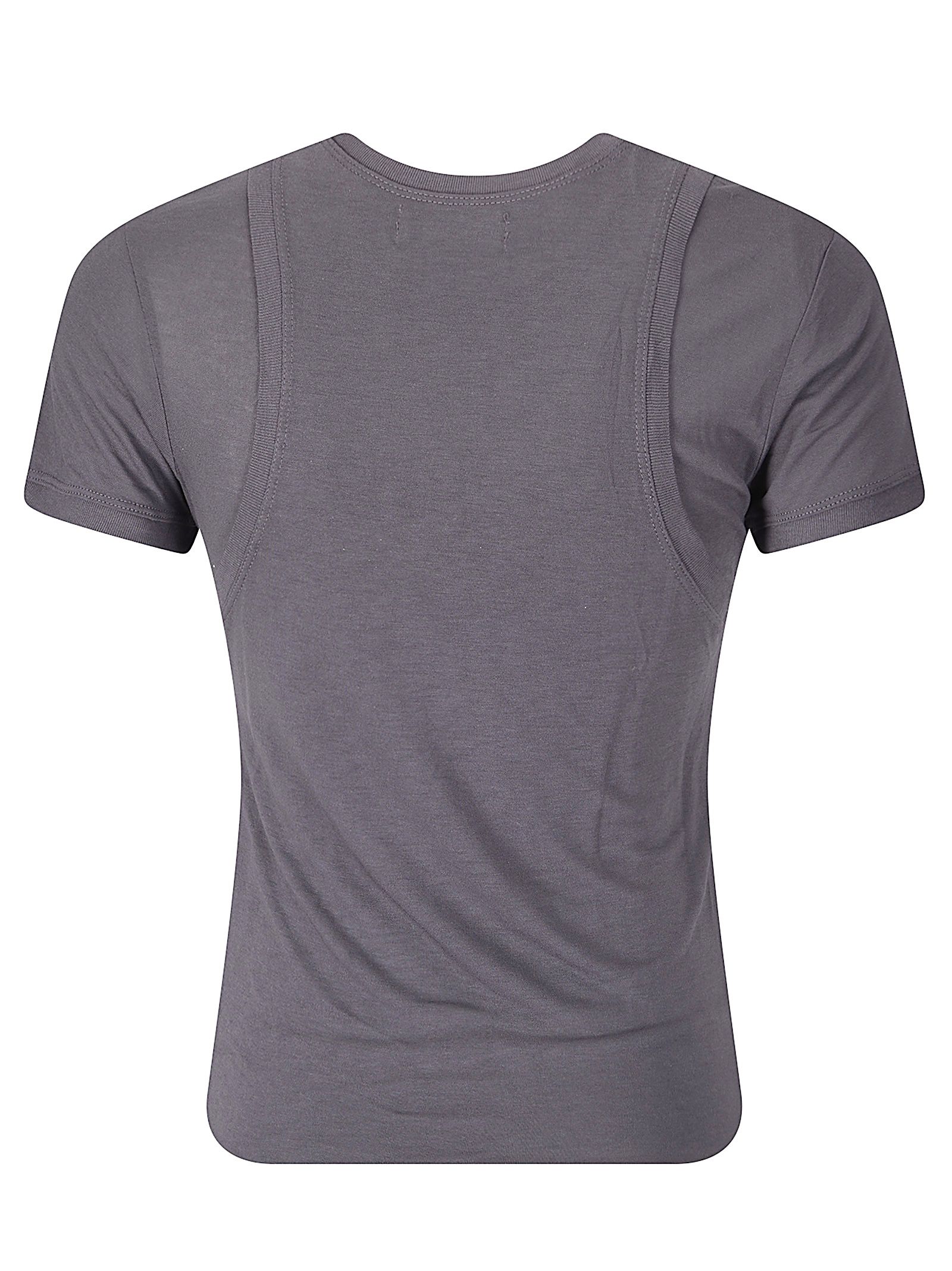 Double crew neck T-shirt, short sleeves, overlapping of a short-sleeved shirt and a tank top