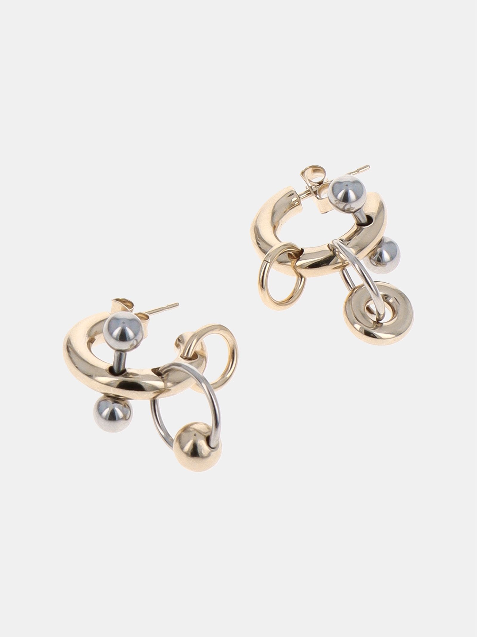 Small gold brass earrings with contrasting silver piercing-effect details.
