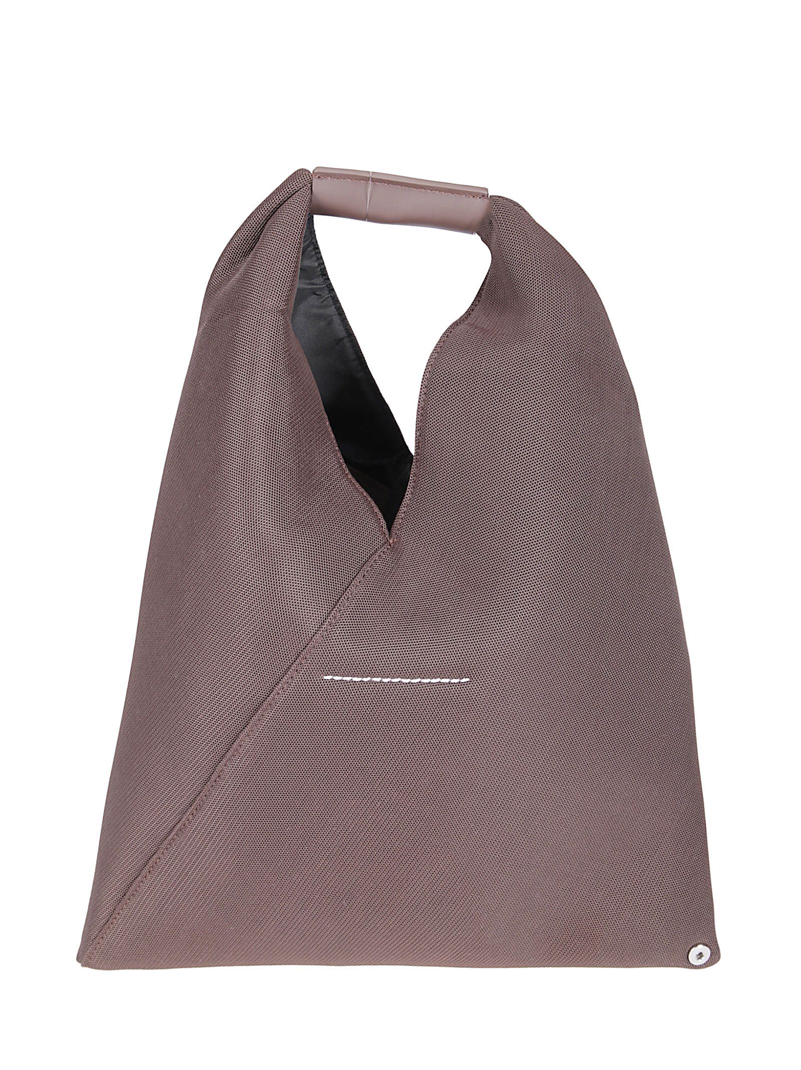 line of white stitches attaching the MM6 label to the back of the garment is distinctly visible from the exterior.
