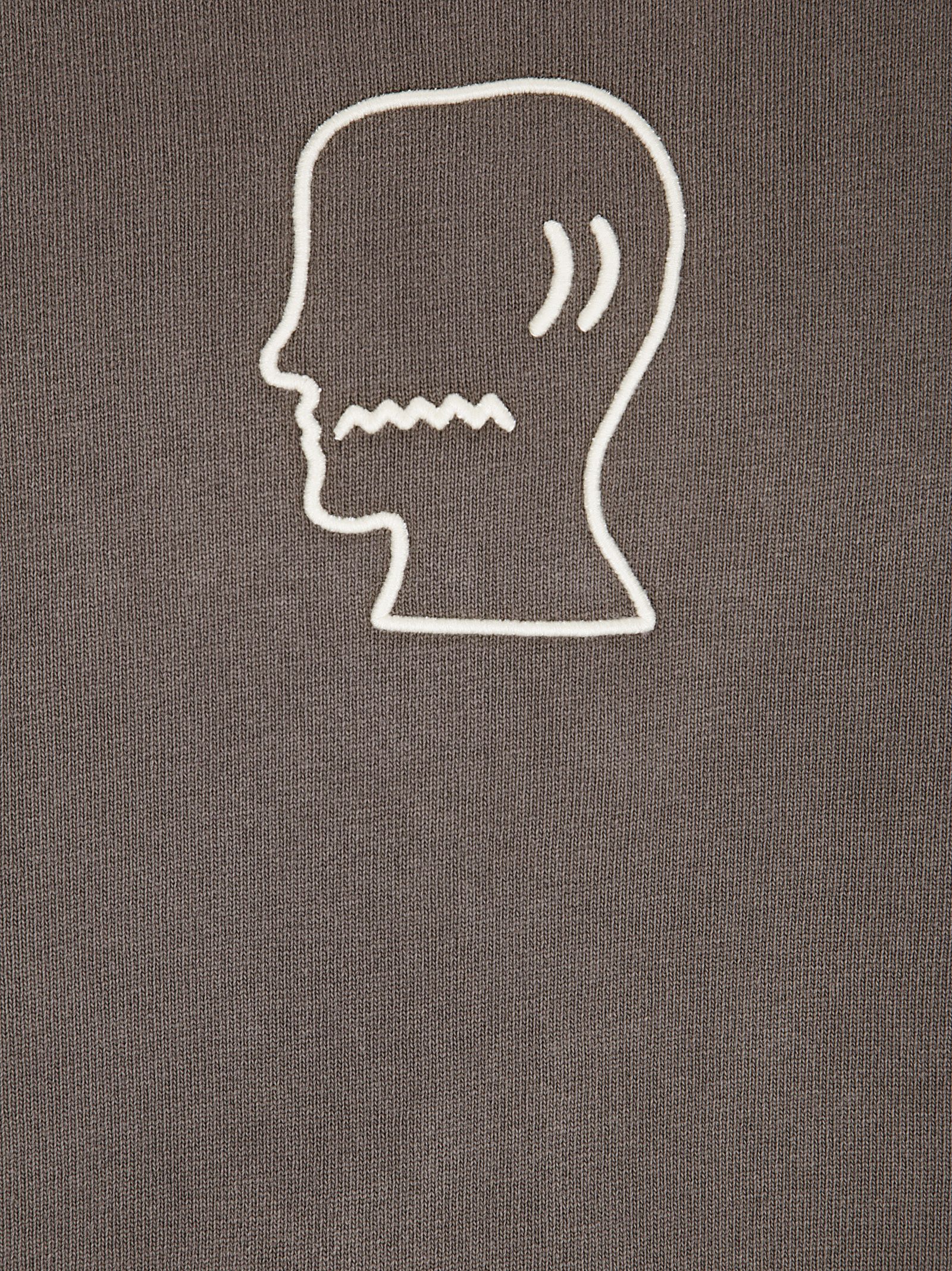 Tshirt in cotone nero con colletto tondo, logo con testa applicato frontalmente a contrasto, fit leggermente comodo.