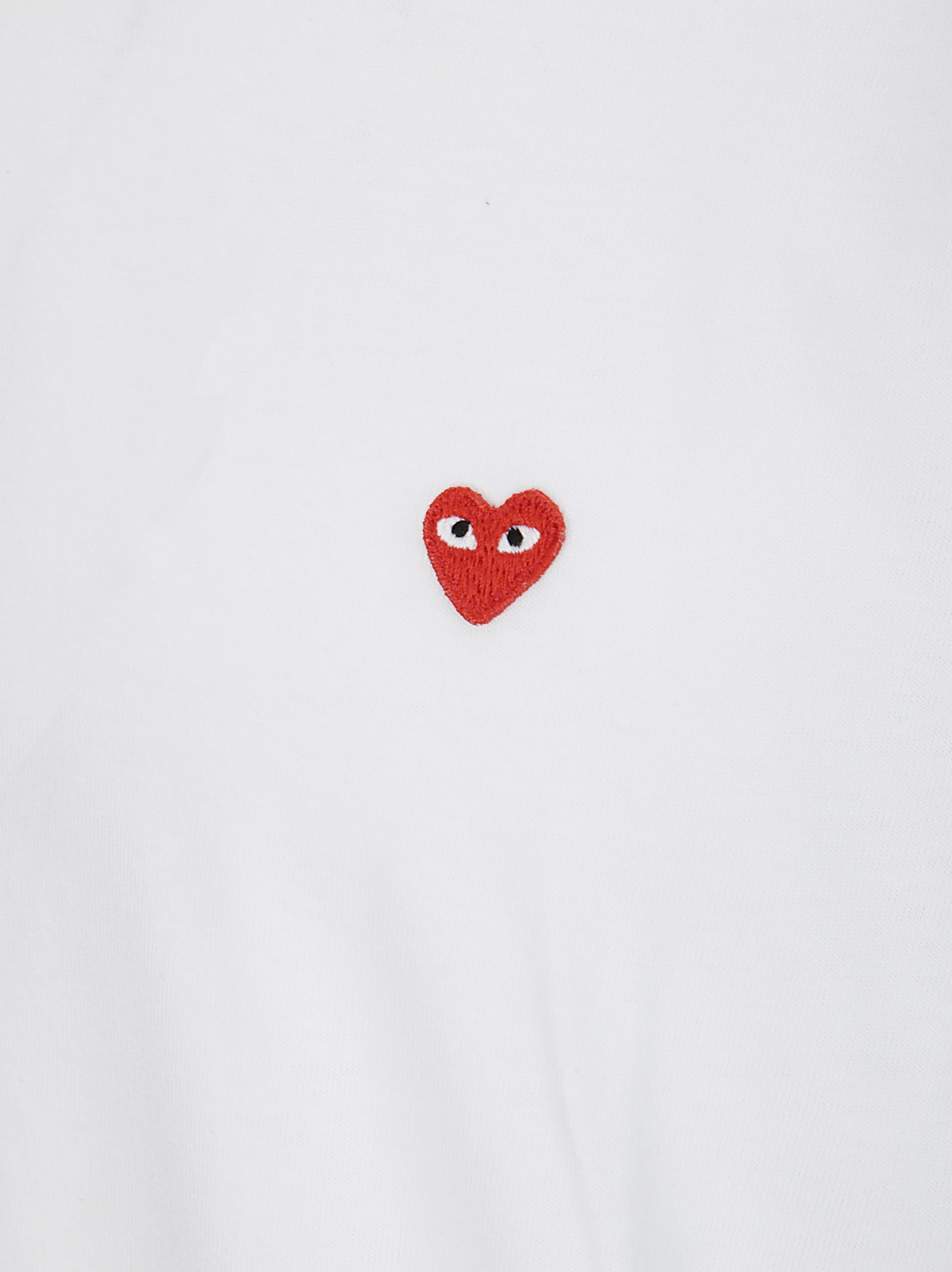Camiseta de algodón blanca con mini corazón aplicado en la parte delantera, corte regular, cuello redondo.