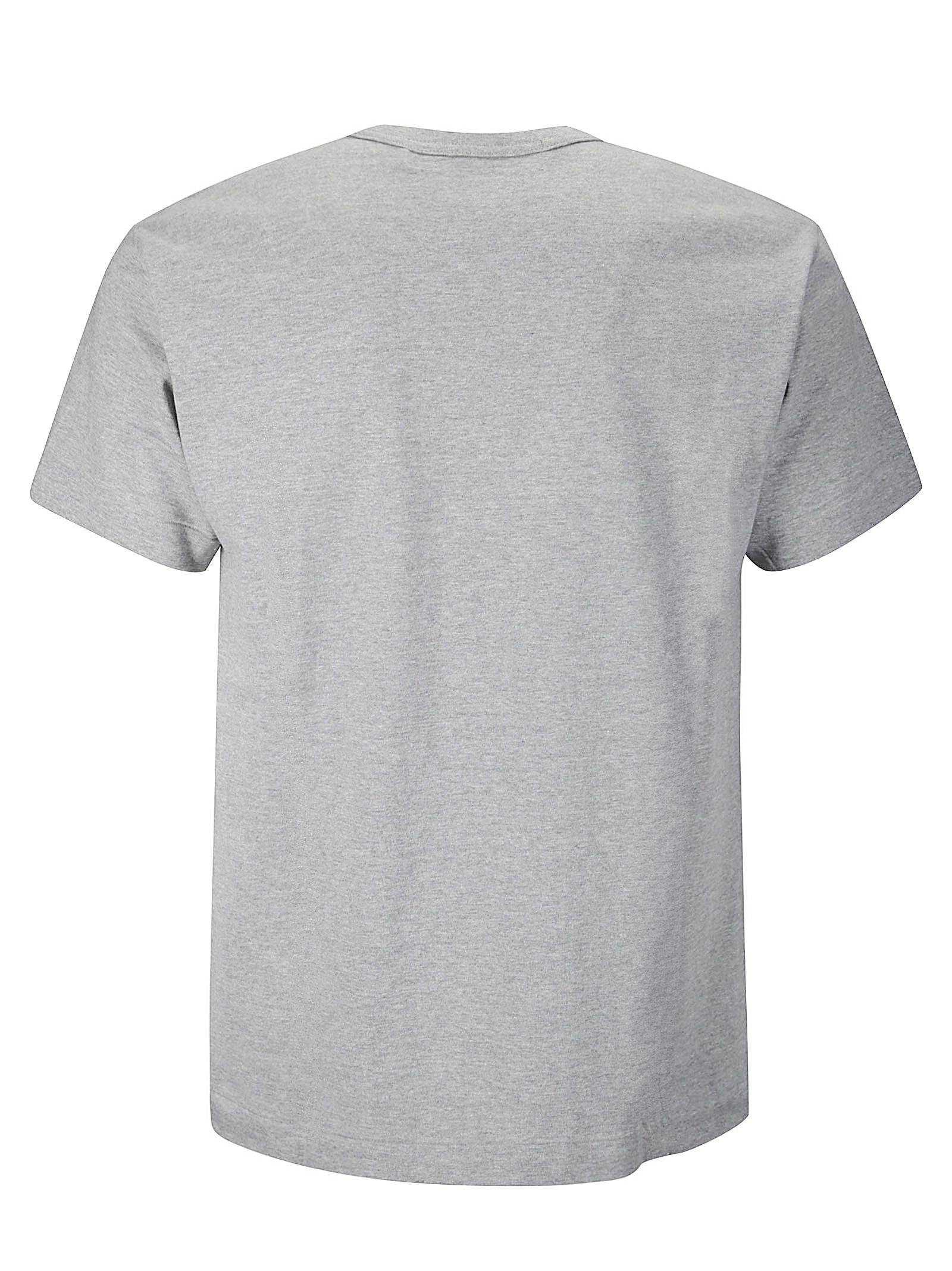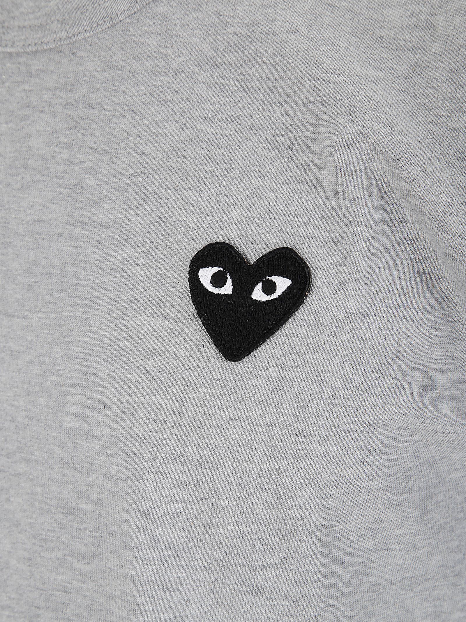 Camiseta gris con corazón negro, corte regular y cuello redondo.