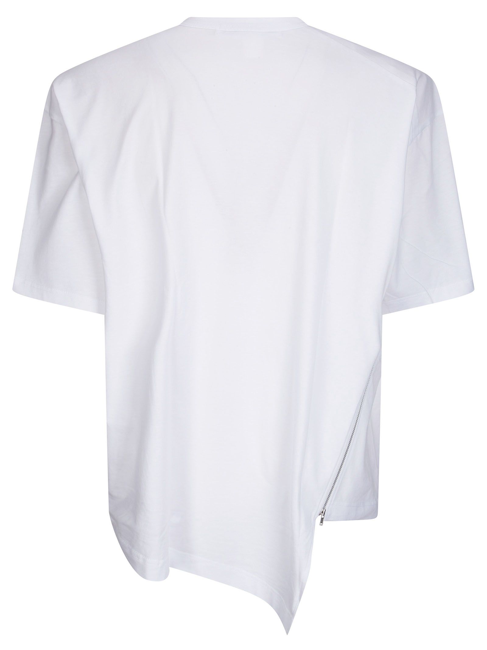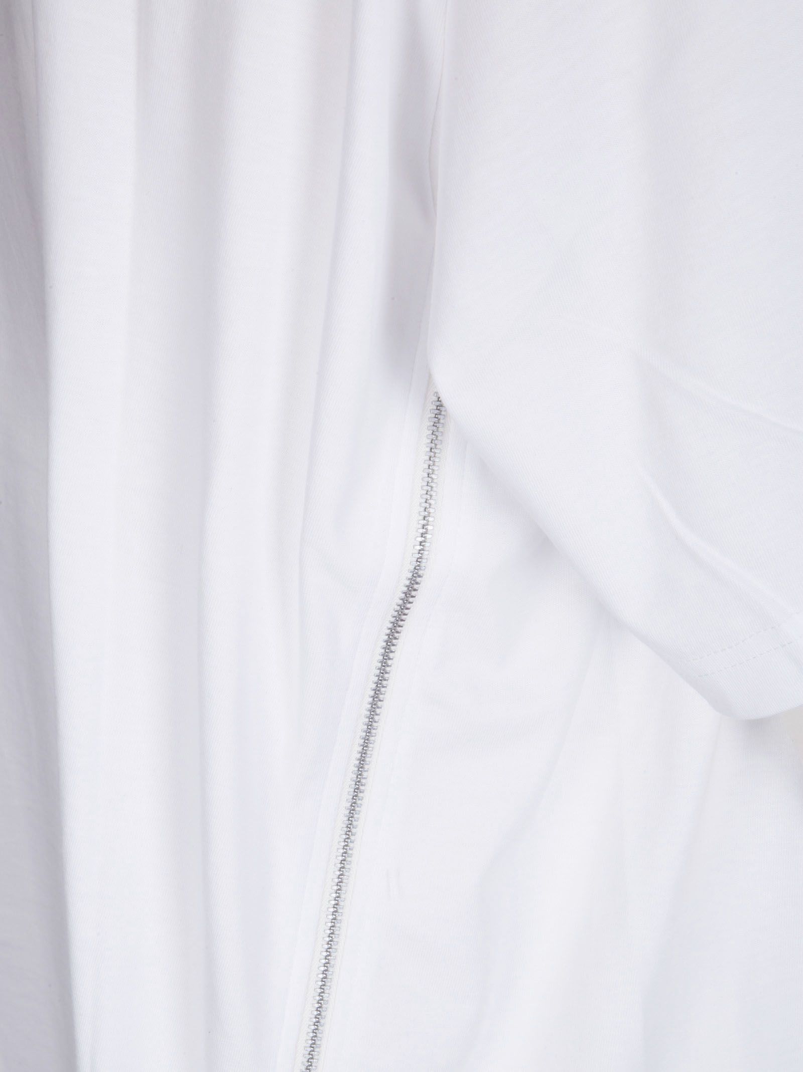 Camiseta asimétrica de cuello redondo con cremalleras laterales delanteras y traseras. Corte holgado.