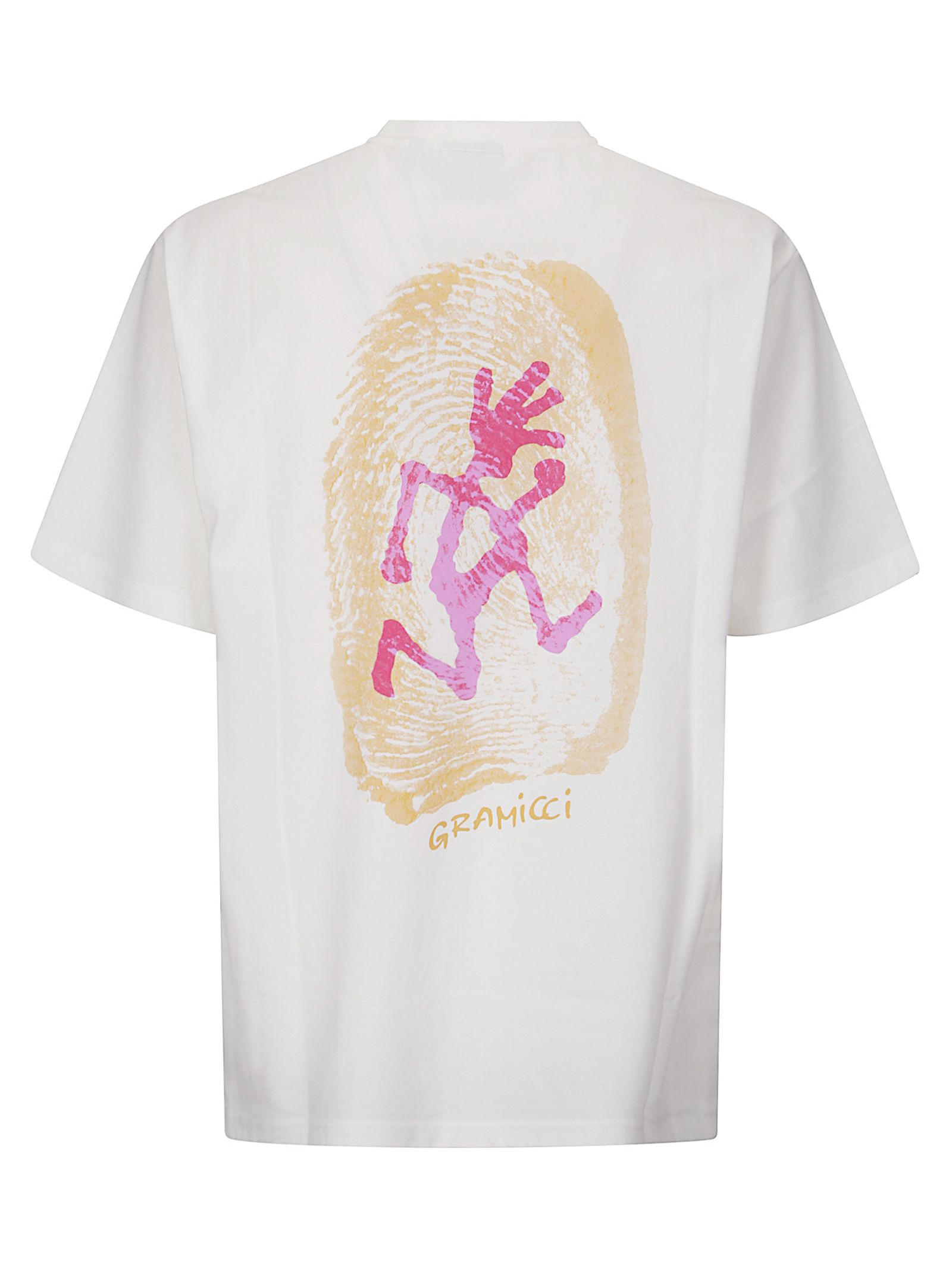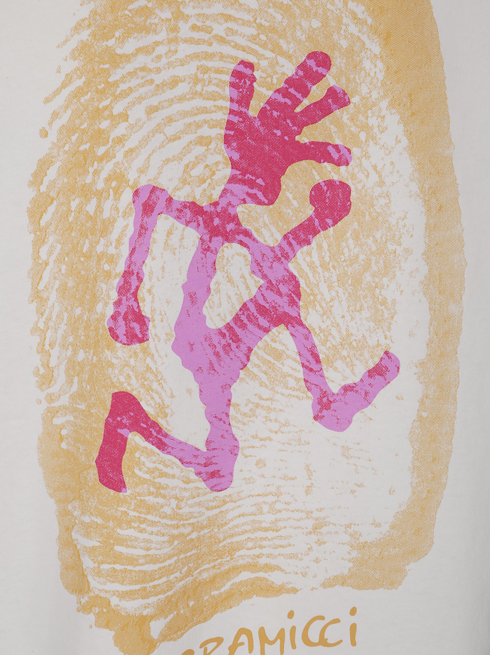 Camiseta de algodón de cuello redondo, manga corta y estampado en el pecho y maxi estampado allover en la espalda.