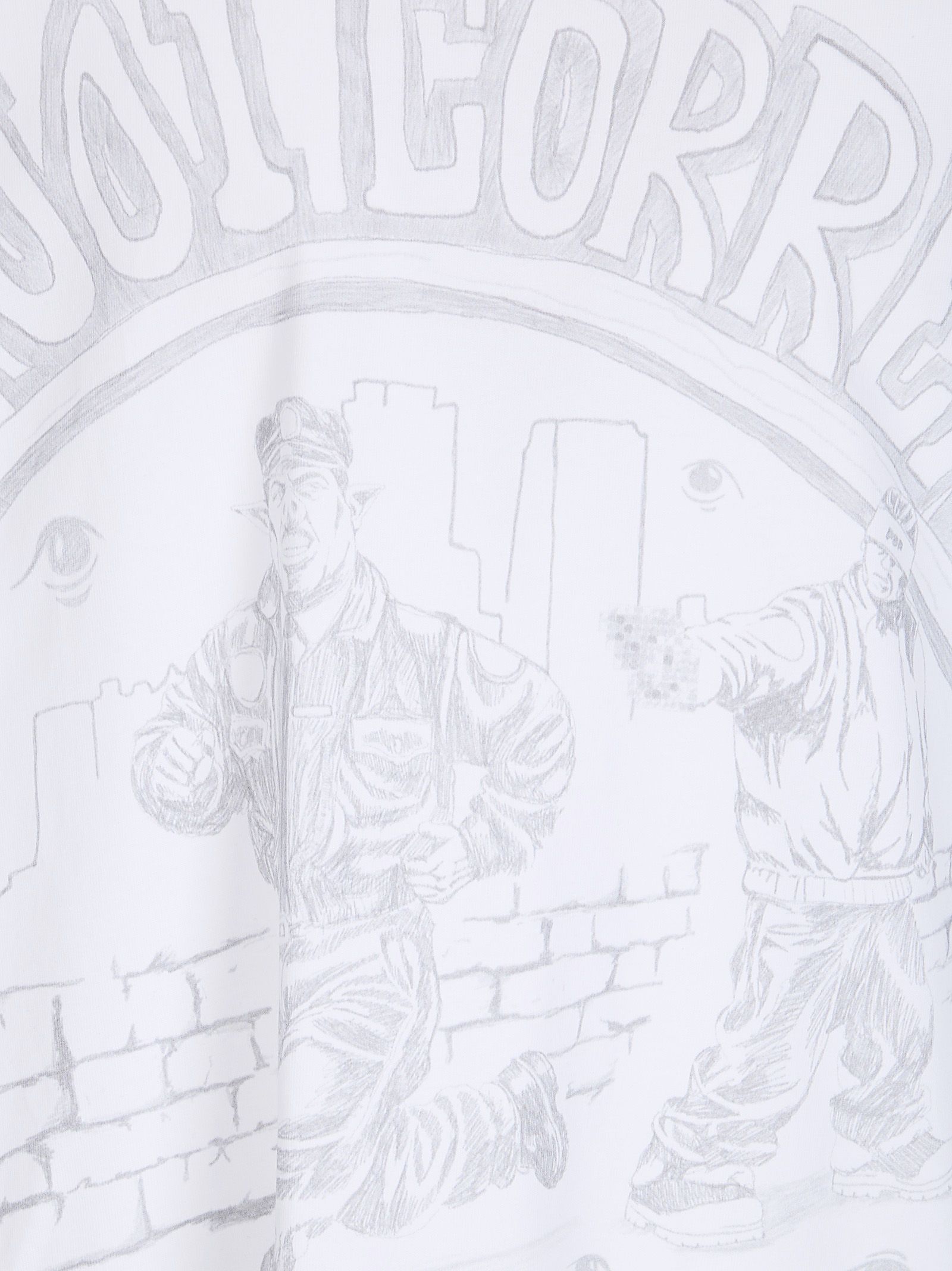 T-shirt oversize girocollo con stampa frontalee patch sulla manica.