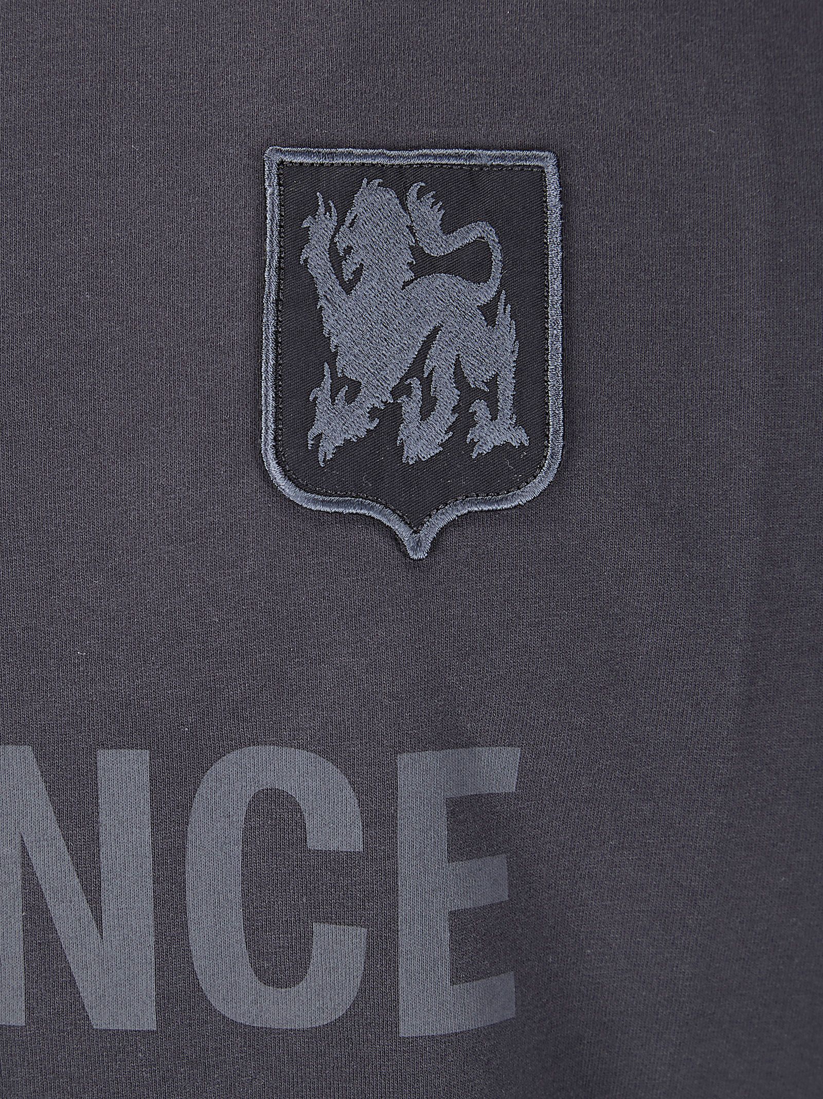 Camiseta oversize en algodón arruinado, estampado frontal, solapa en el pecho, corte holgado.
