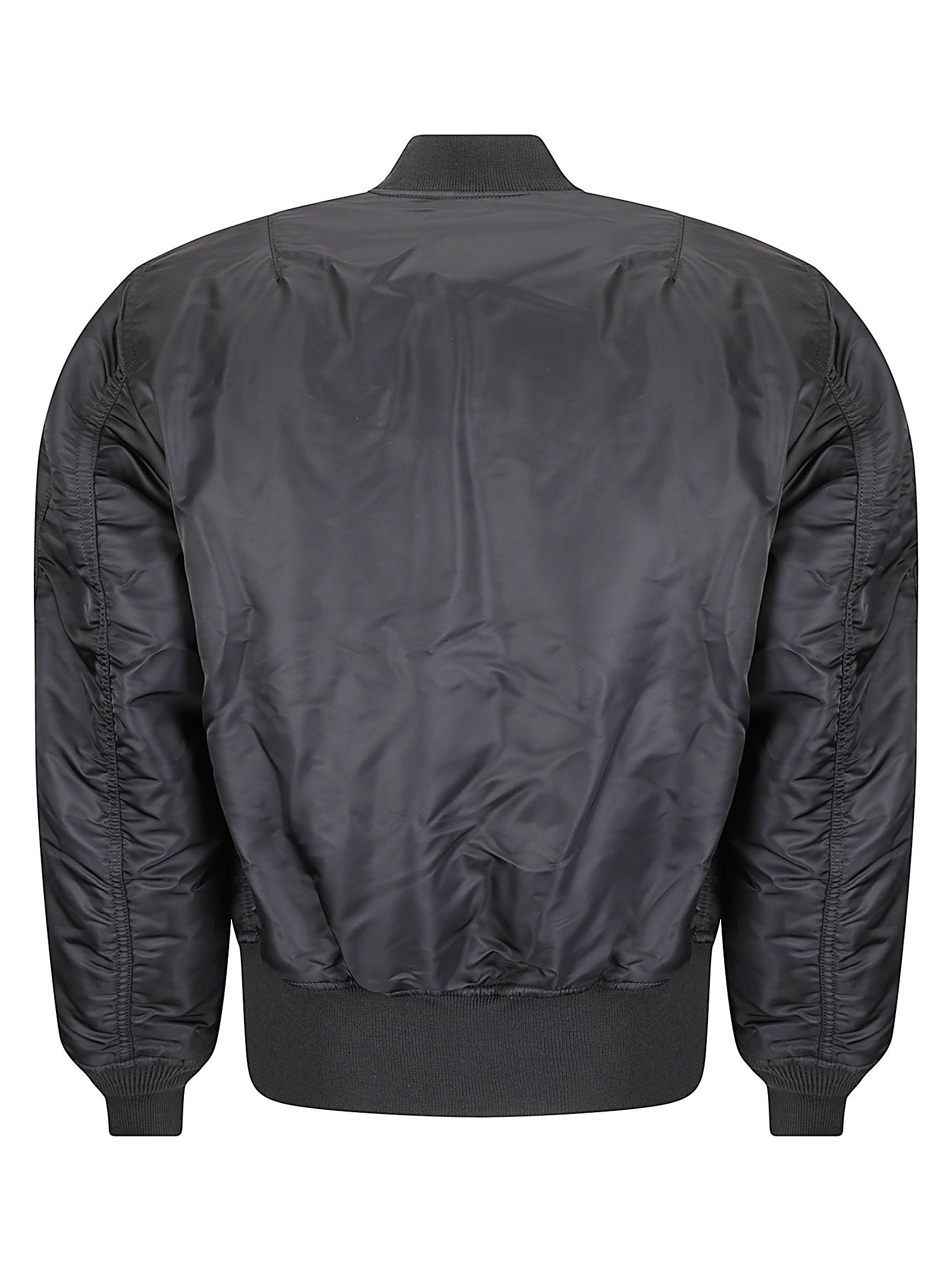 Chaqueta bomber de nailon con cierre de tira de cuero en la cremallera, dos prácticos bolsillos externos con botones a presión, corte holgado.