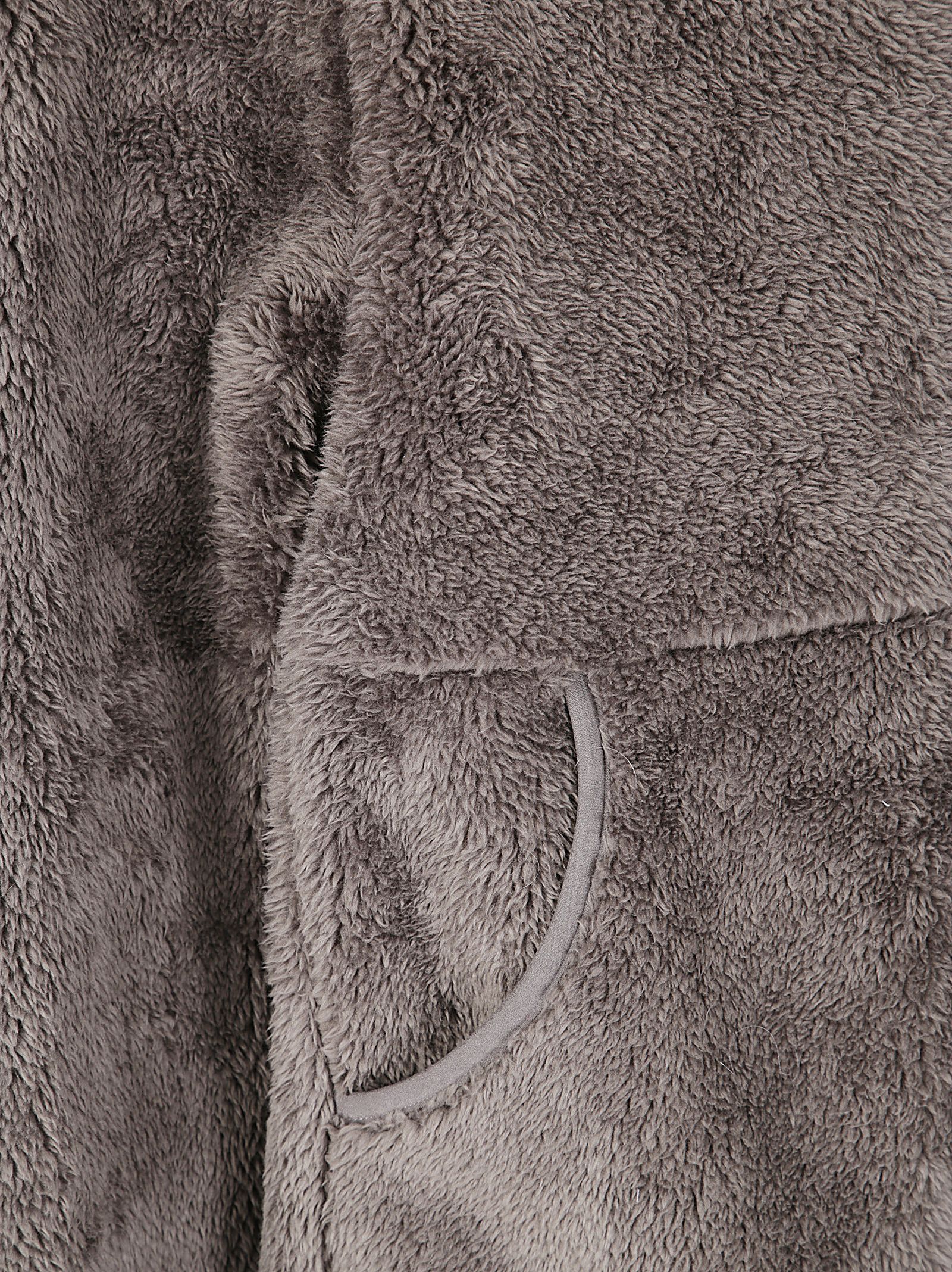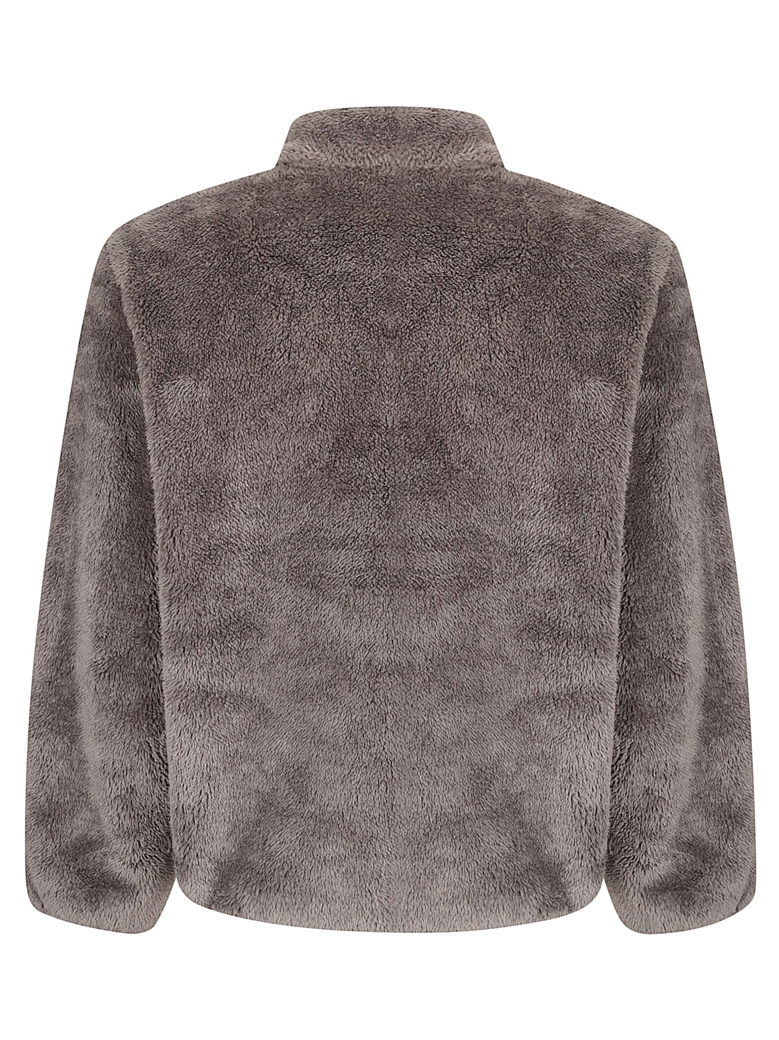 Chaqueta de felpa de chenilla con cuello alto, cierre de cremallera, bolsillo canguro, corte regular.