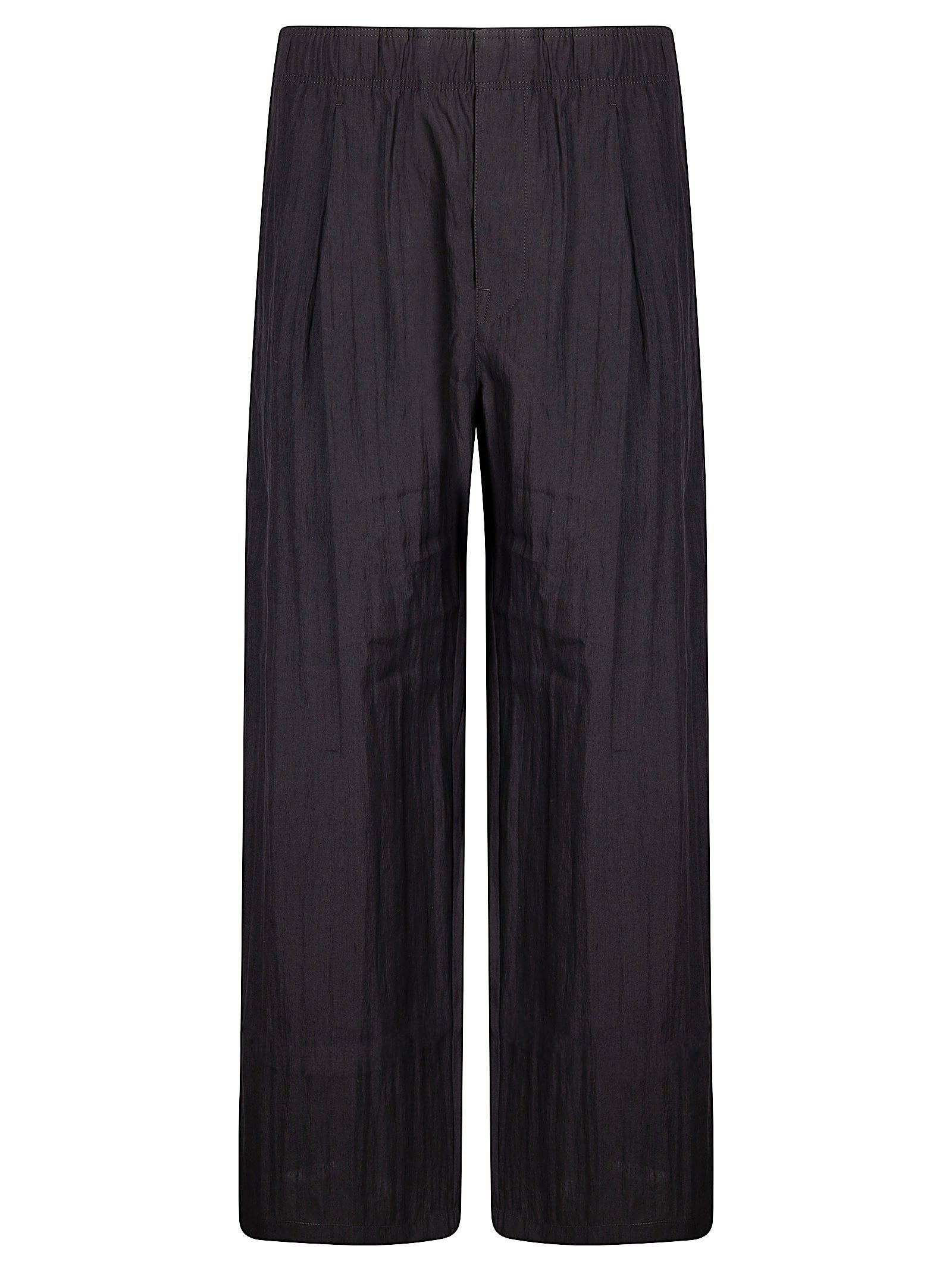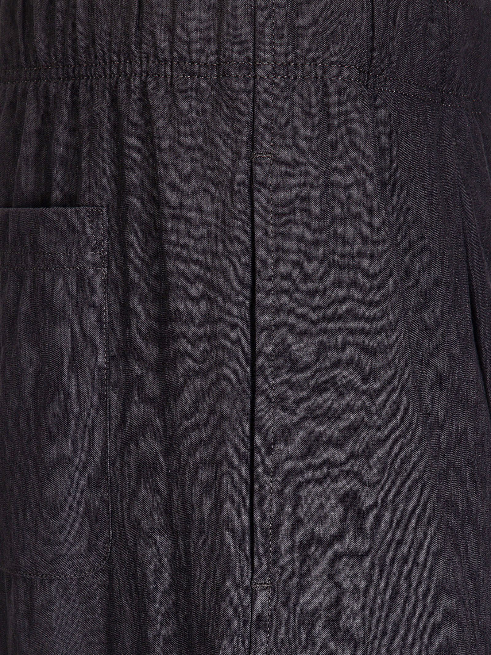 Pantaloni a gamba dritta in lino, vita elasticizzata, tessuto texturizzato, tasche laterali.