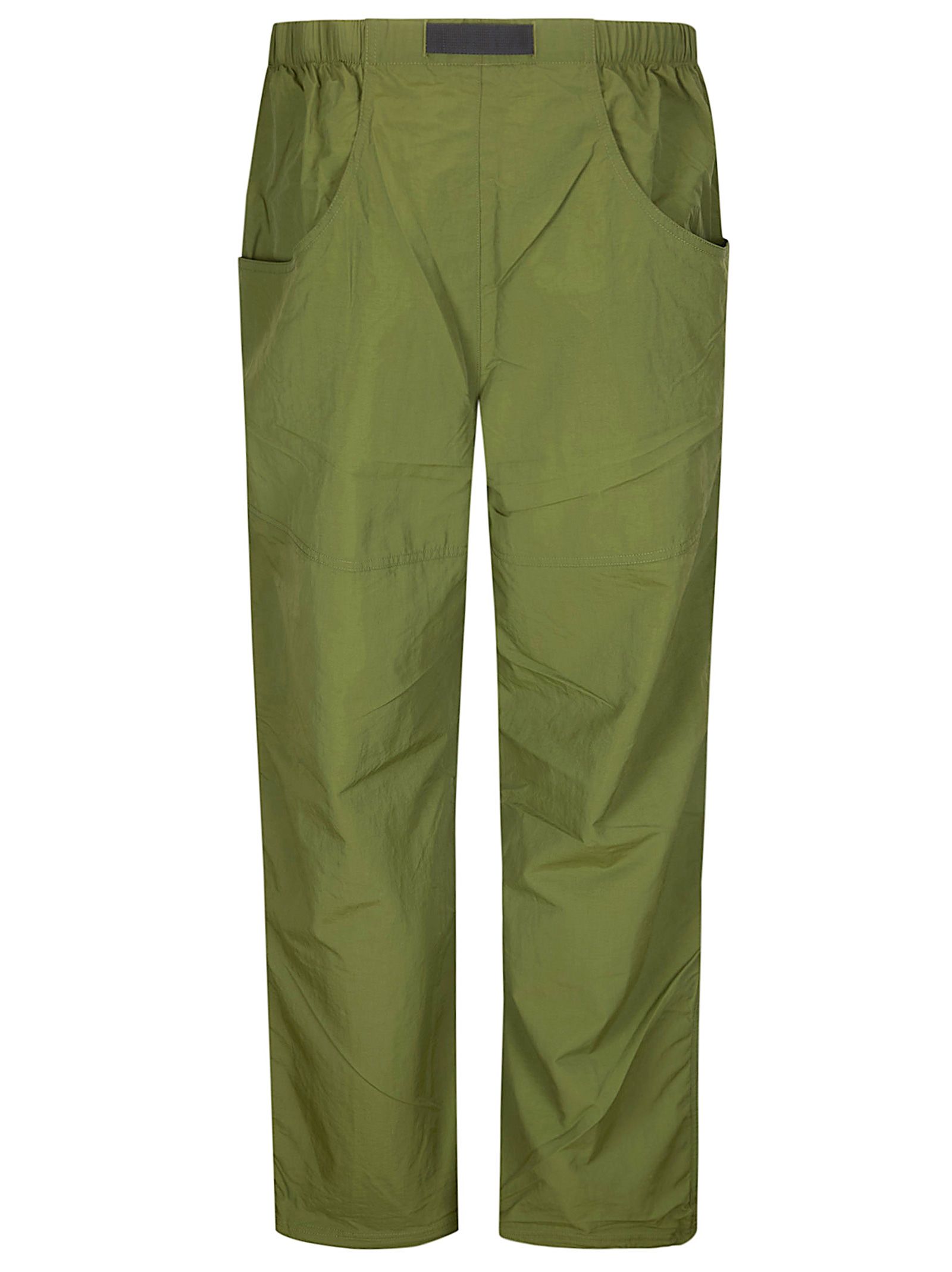 Pantalonii gamba dritta con vita elasticizzata e cintura, tasche frontali e posteriori, logo applicato frontale.
