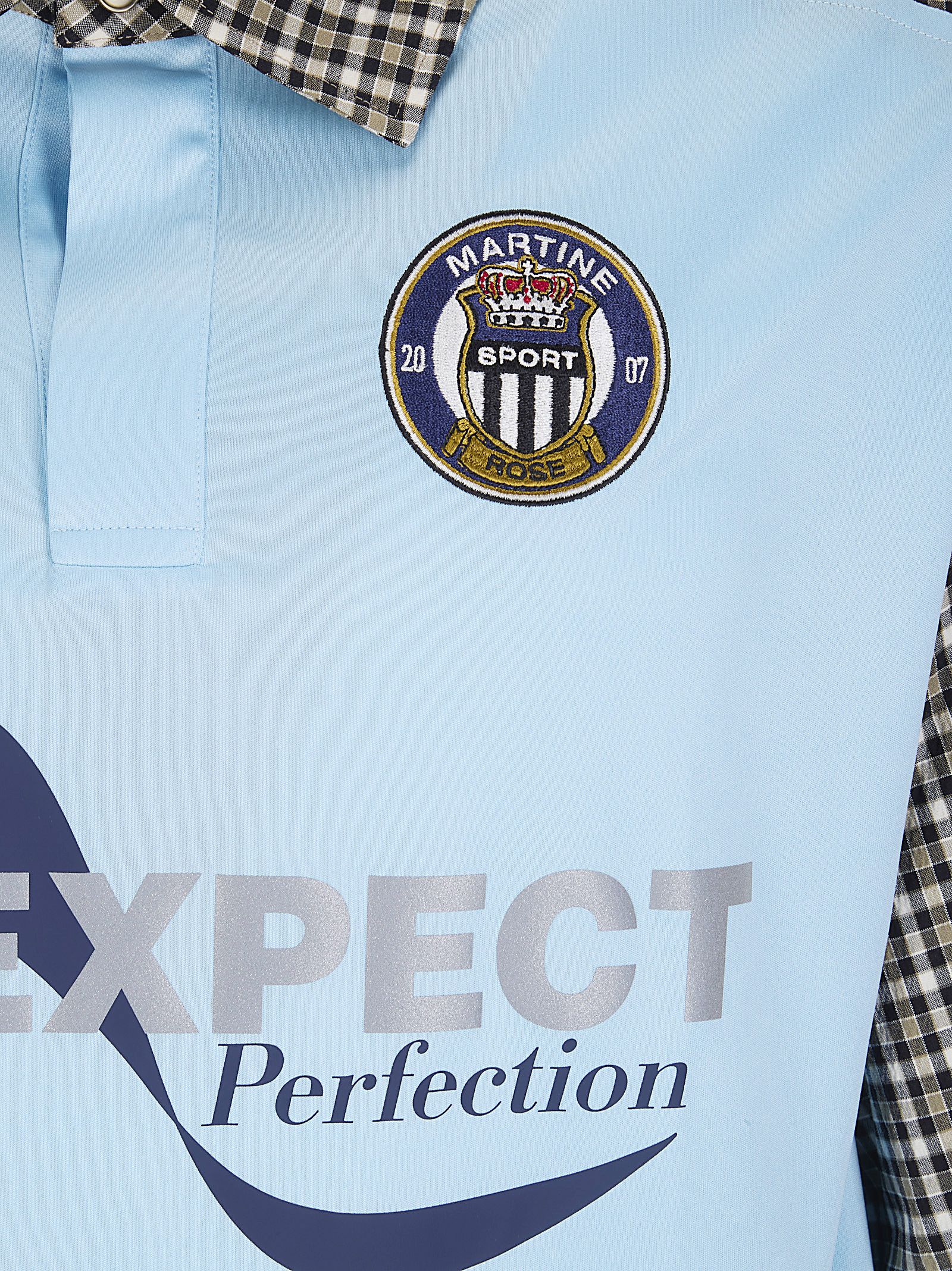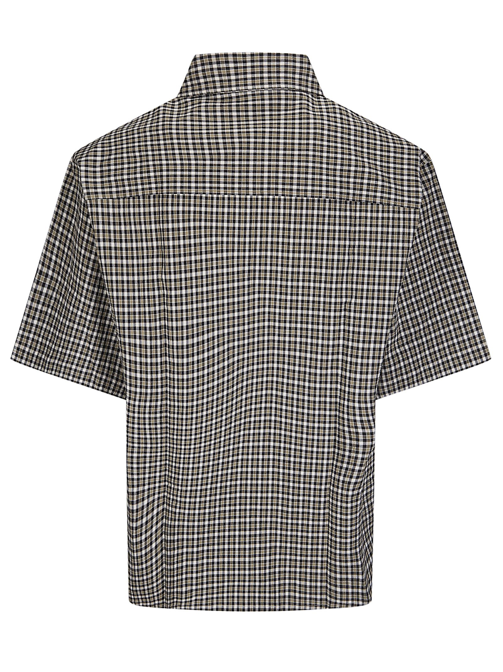Polo con colletto classico, maniche corte, fantasia a quadretti Vichy sul colletto e sulle maniche, stampa grafica frontale, vestibiltà ampia