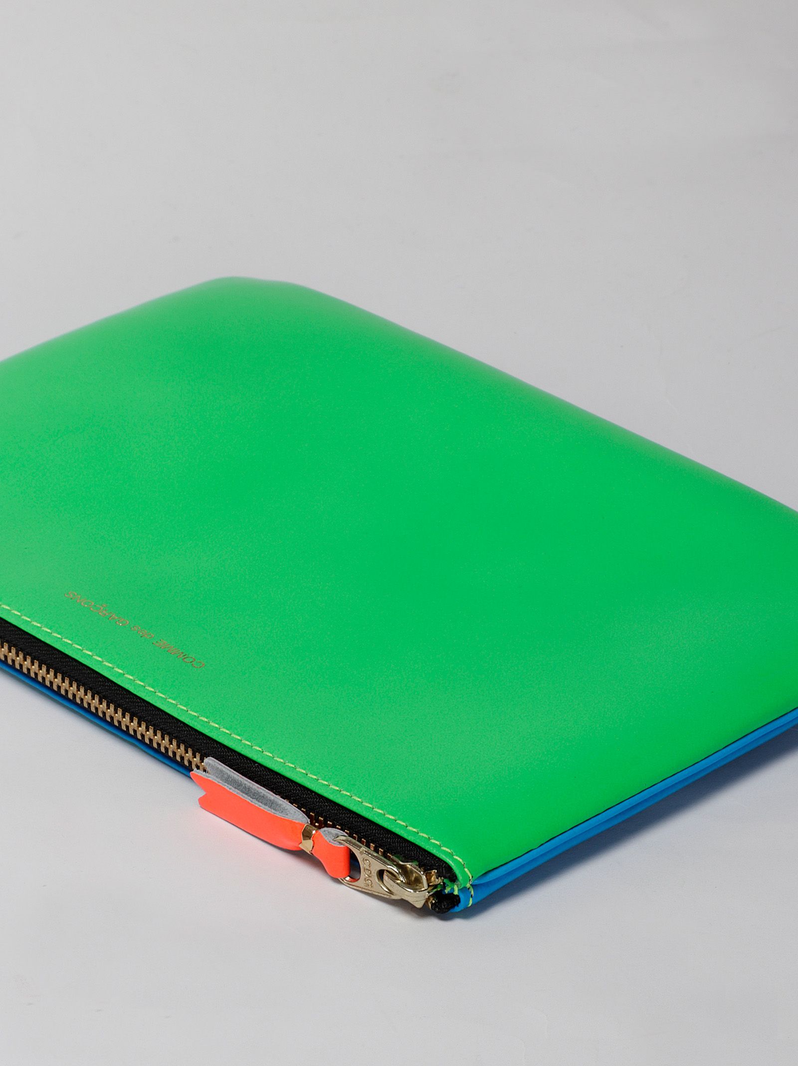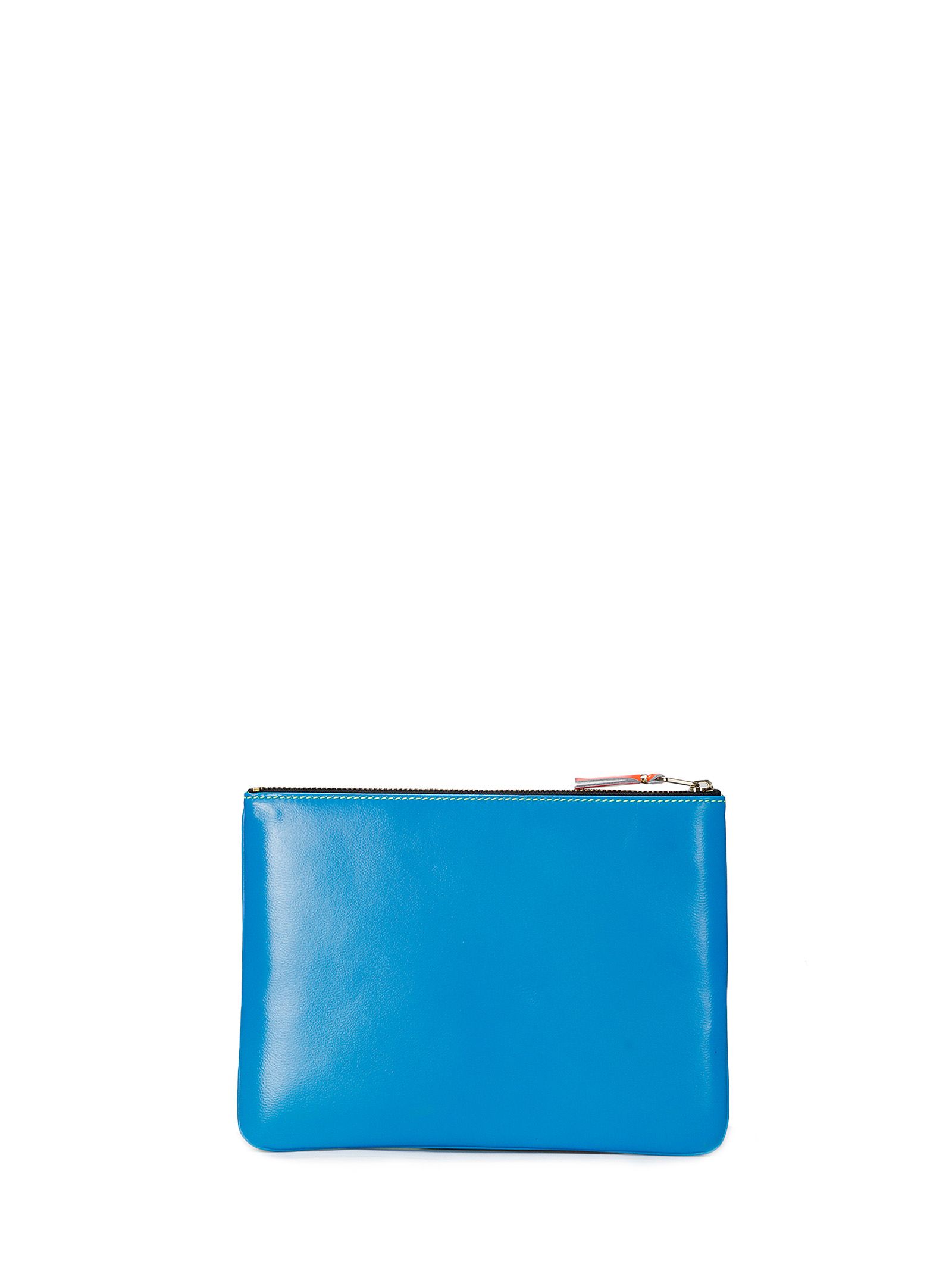 Cartera de piel, diseño color block y detalle de logo central dorado