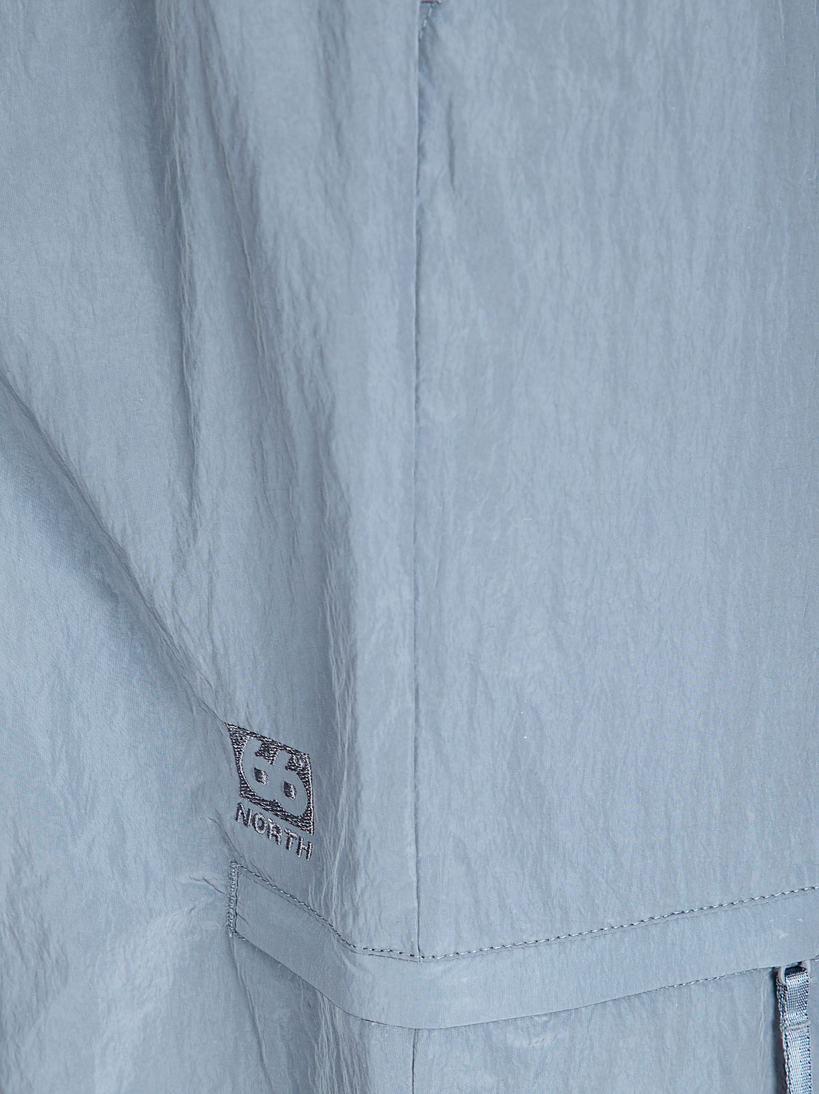 Pantalón de tejido técnico, cintura elástica, bolsillo frontal con cremallera, pierna recta.