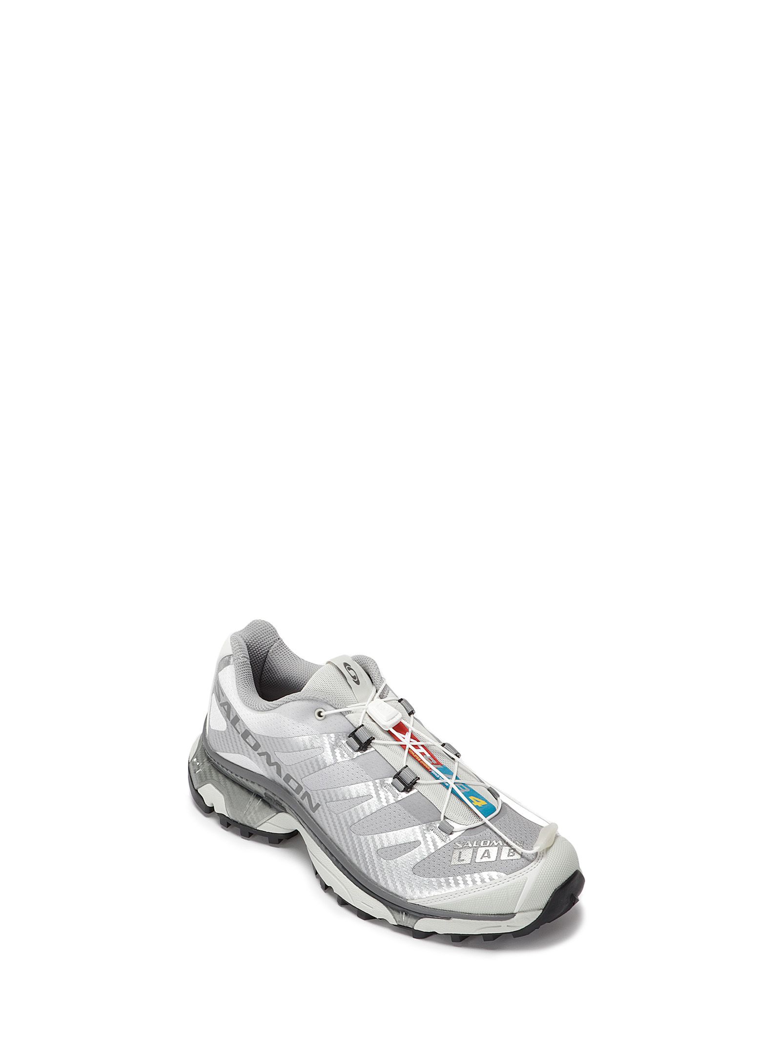Zapatillas Salomon XT-4 OG plateadas con suela gris y suela contagrip.
