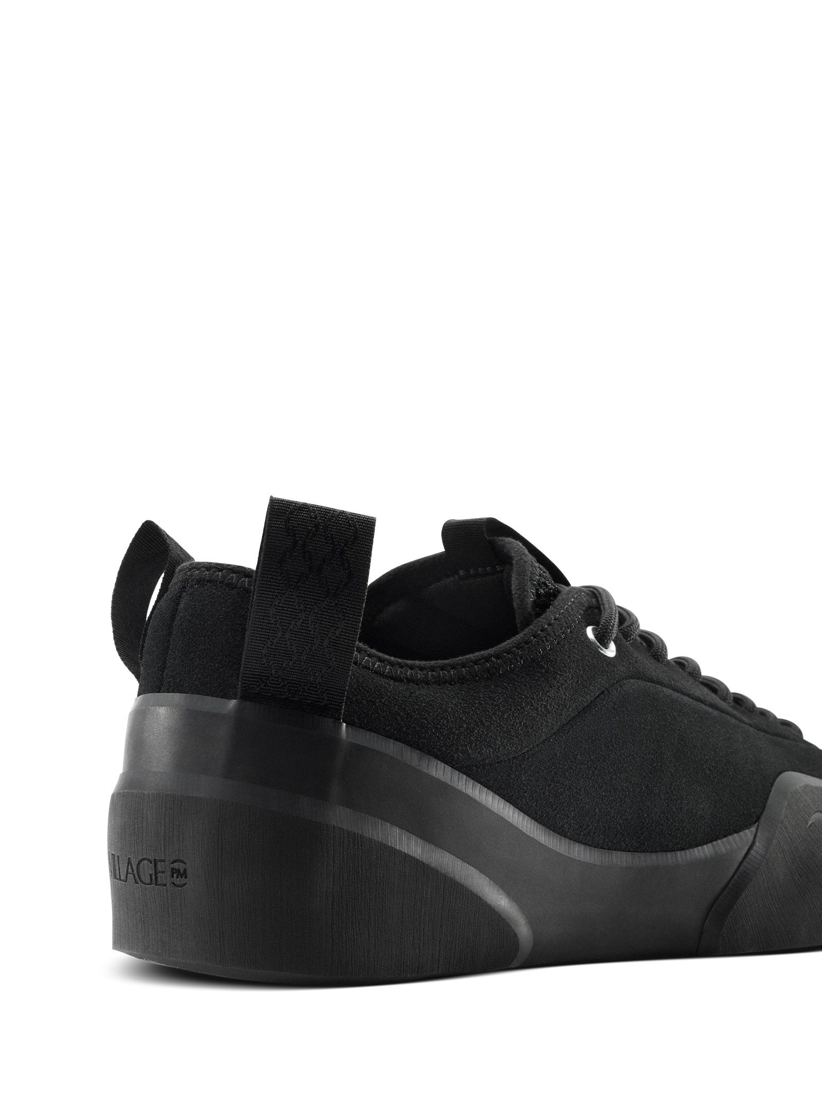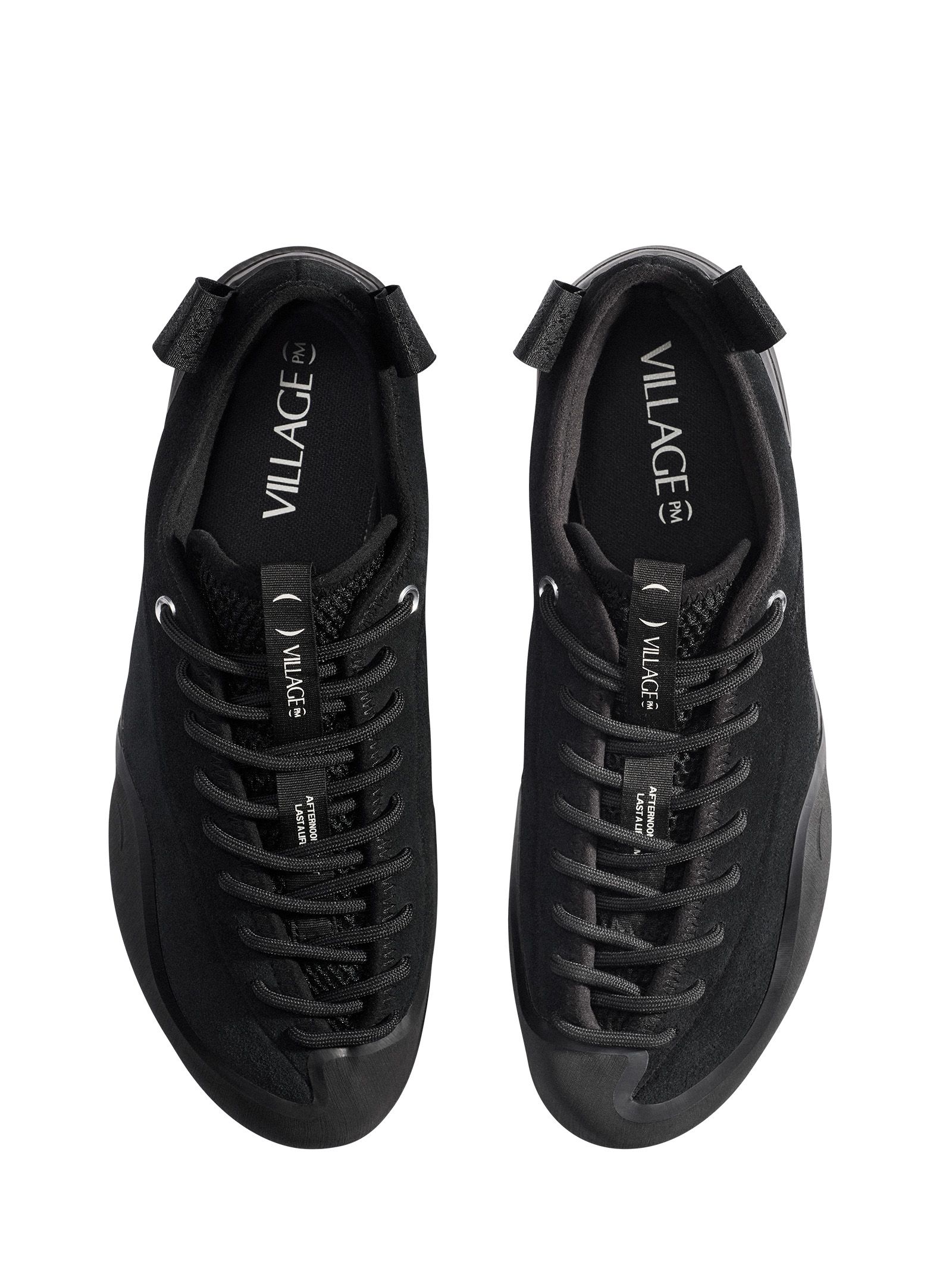 Zapatillas bajas modelo 1PM, color negro mate con suela de goma en contraste, diseño estilo zapatilla de skate, cordones de escalada, doble lengüeta trasera.